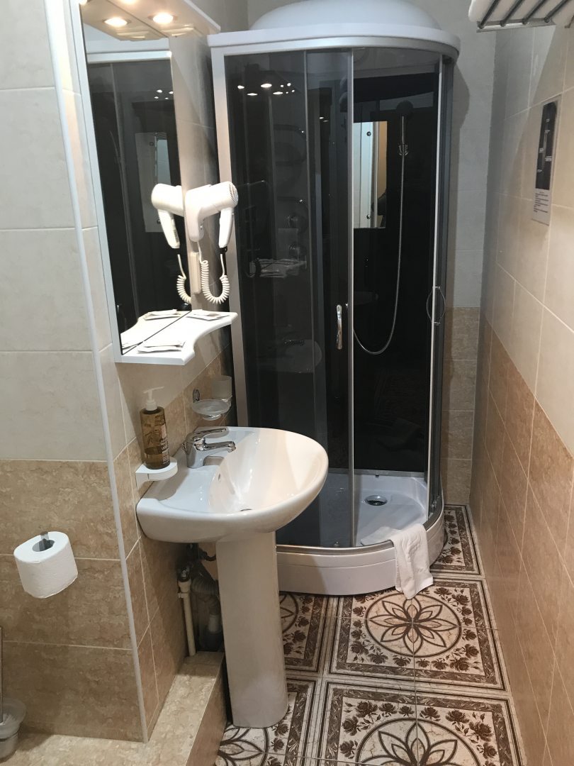 Из недостатков: непонятная система отопления ванной комнаты- полотенцесушитель постоянно холодный. Как объяснили мне на ресепшене, он нагревается при пользовании горячей водой. Я мылась долго, но он так и остался холодным. Не знаю, может быть нало прогонять горячую воду по несколько часов, я таких экспериментов не ставила, мне было не холодно, но как будет зимой?