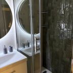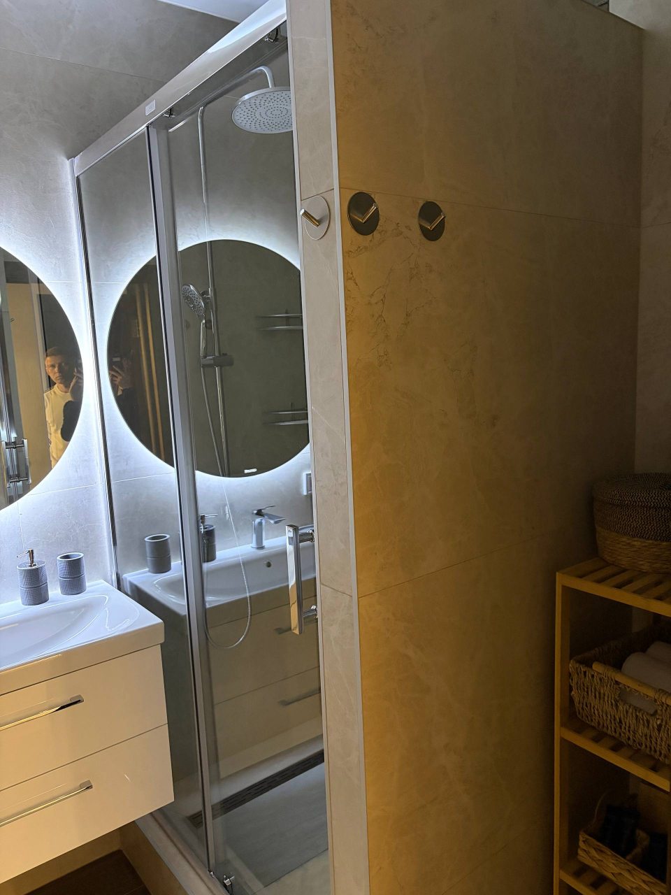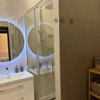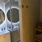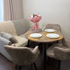 Отличный современный дизайн. Все продумано до мелочей. Везде декоративные горшочки с цветами, аромапалочки, свечи на пульте управления с таймером очень спасали ночью, использовали их по дому в качестве светильников. В доме есть все необходимое и даже больше: посуда (единственное - можно обновить сковороду), большой холодильник, газовая плита, стиральная машинка, два современных телевизора со смарт-тв, отличный интернет, пылесос. Много разной современной и красивой мебели. Матрасы и подушки удобные. Два кондиционера. В ванной комнате тоже все шикарно. Очень просторная душевая кабина, есть фен. Удобный электрический полотенцесушитель с таймером. Было приятно, что при заезде нас ждал "комплимент": фрукты, цветы, игристое. Хозяева подошли к оформлению дома с душой. Оперативно отвечали на все просьбывопросы. Мы в Ейске отдыхали уже много раз, поэтому привычные к отключению электричества. За две недели проживания свет отключали дважды. Но от хозяев это, безусловно, не зависит. Около дома можно свободно припарковаться. Примерно в 7 минутах от дома есть магазины и рынок. Теперь о пляже. Действительно, до ближайшего пляжа всего 5 минут через жд пути. На пляже ракушечник, море мелкое, для детей в самый раз. Есть кабинка для переодевания, кафе. За более глубоким морем надо ехать на Должанку, а за более диким пляжем в Камышеватскую. Однозначно рекомендую номер. Если снова поедем в Ейск, то только сюда!