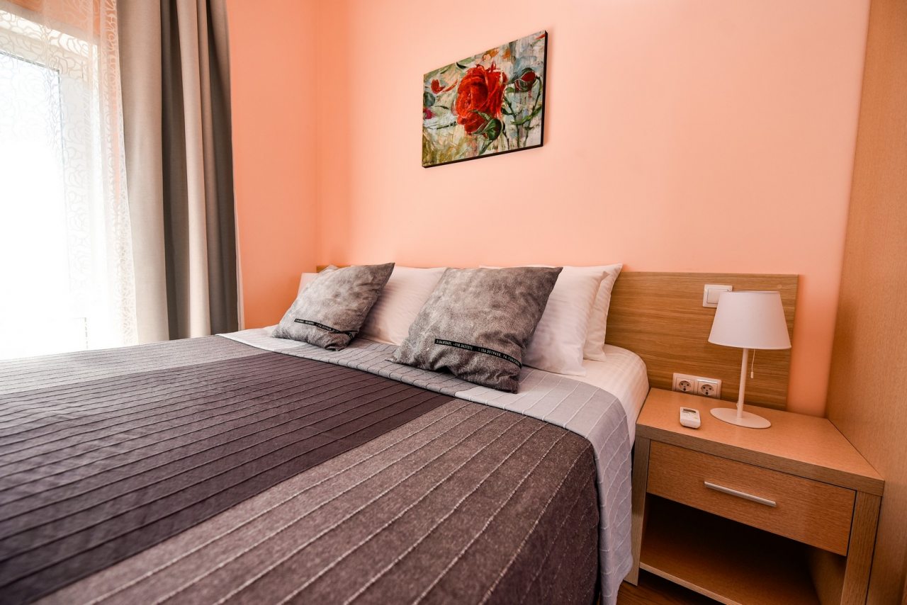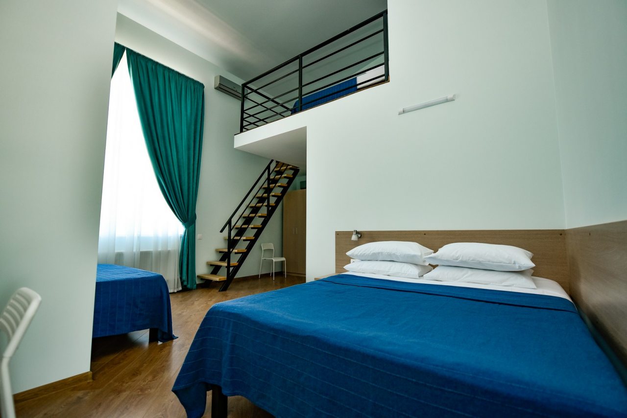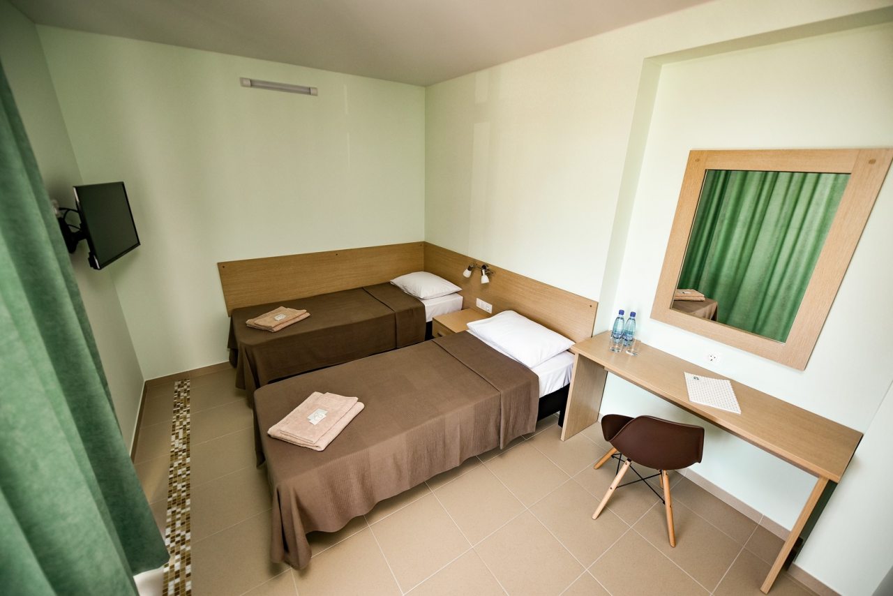 Для гостей предлагаются уютные номера оборудованные всей необходимой мебелью и техникой для качественного проживания, например: комфортабельными спальными местами с комплектом постельного белья, прикроватной мебелью, шторами для максимально комфортного сна, кондиционером, чайником и шкафом для хранения личных вещей. Санузел укомплектован сантехникой и набором полотенец.