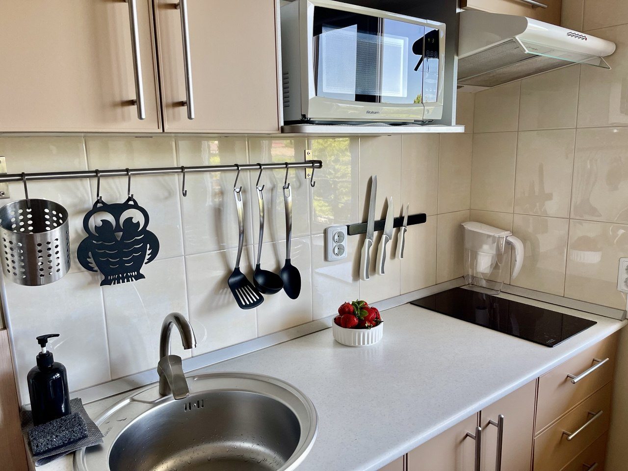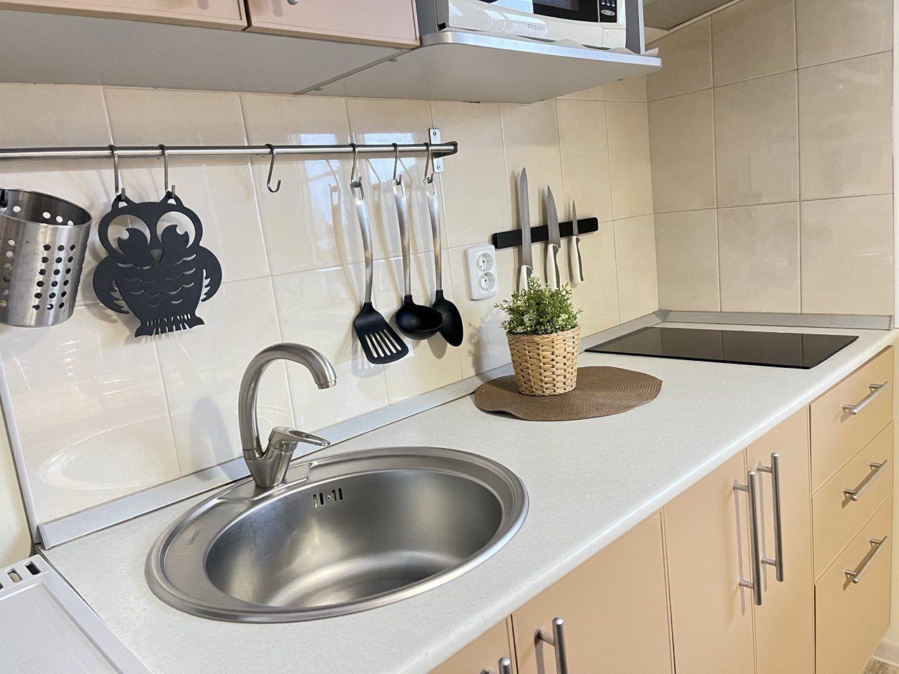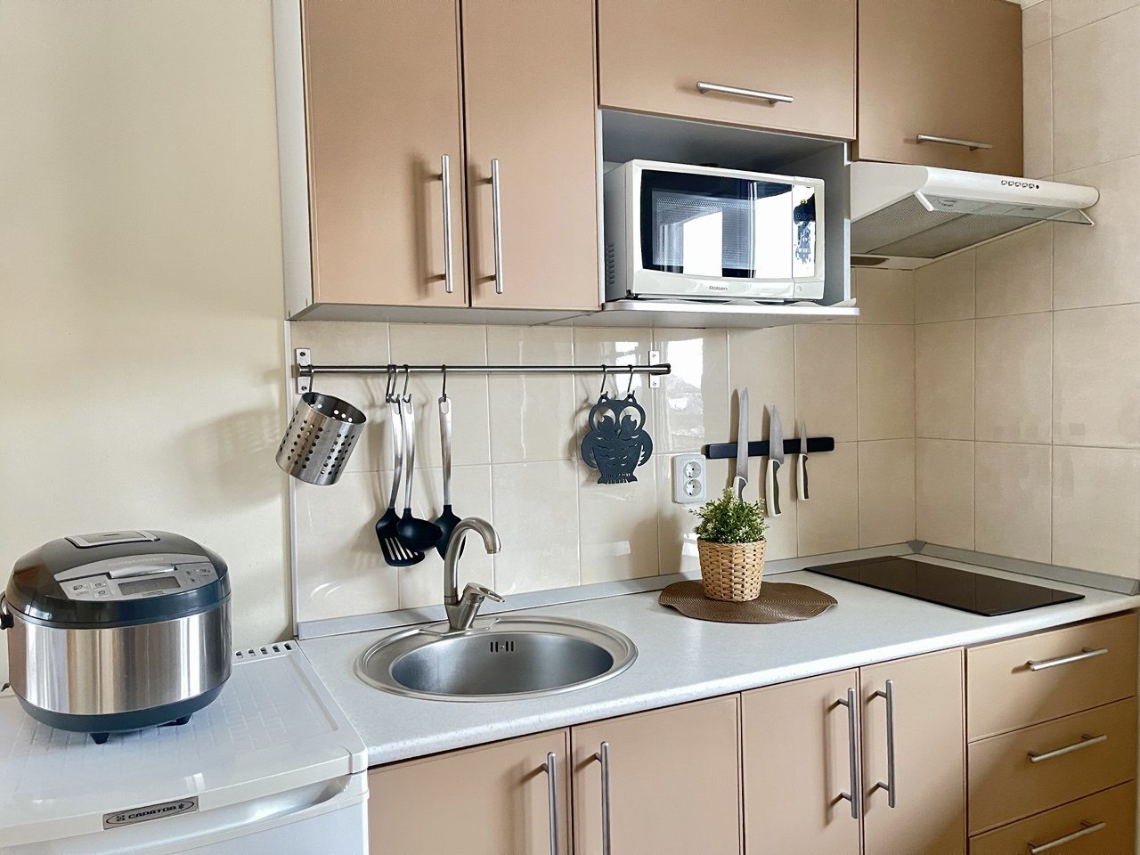 Очень понравился номер, есть все условия и для приготовления еды, стиральная машина. Площадка для детей, тебе не нужно возле них сидеть, так как всё слышишь и видишь из номера , это очень удобно. Дети гуляют одни, но совсем рядом. Расположение удобное, тихо , нет дороги и шумных кофе, но рядом центр где всё есть для развлечения и отдыха. Ещё приедим. Не хватило только анимации для детей. Хоть раз в неделю можно провести.