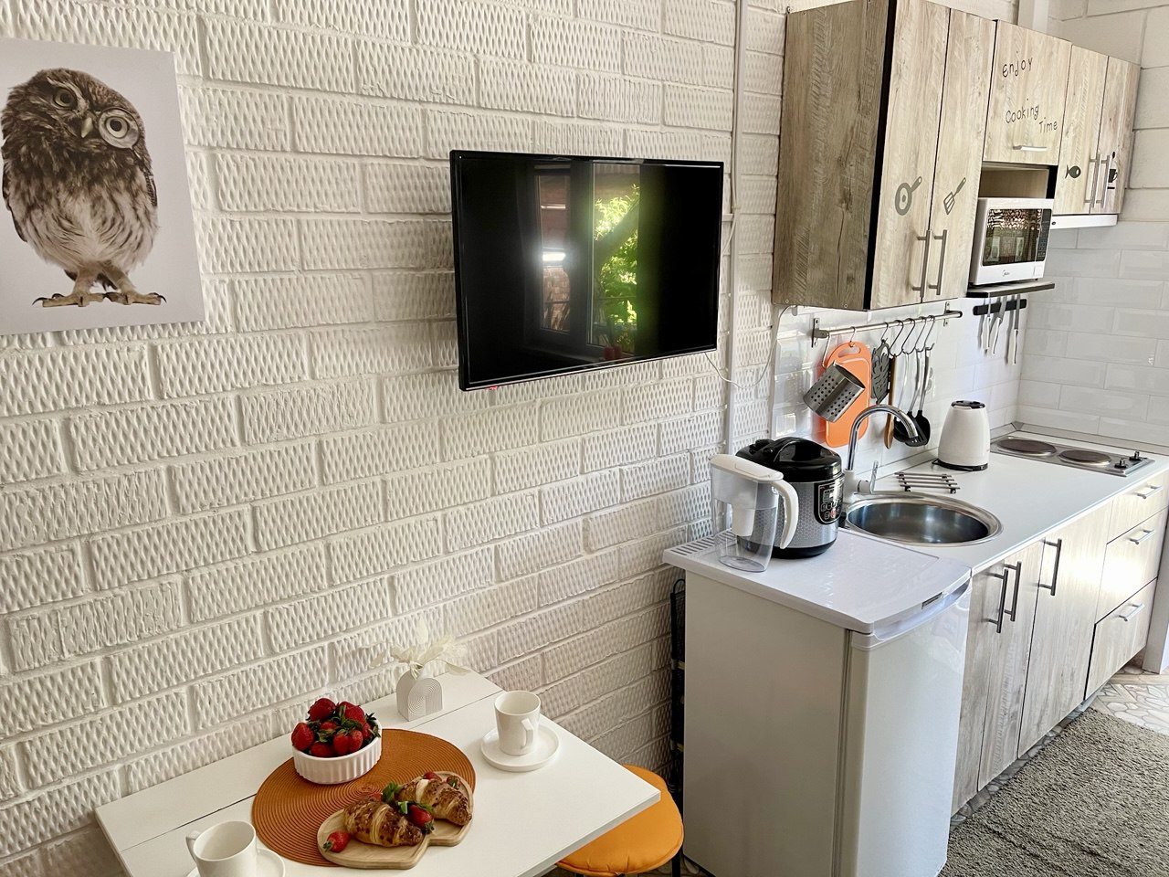 Поблизости большое количество магазинов, кафе, закусочных. Для самостоятельного приготовления еды предусмотрена кухня в номере с посудой и бытовой техникой.