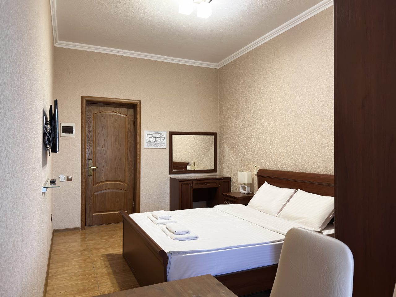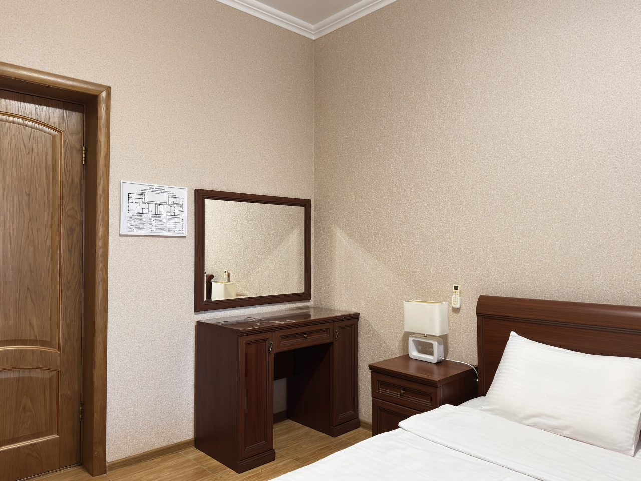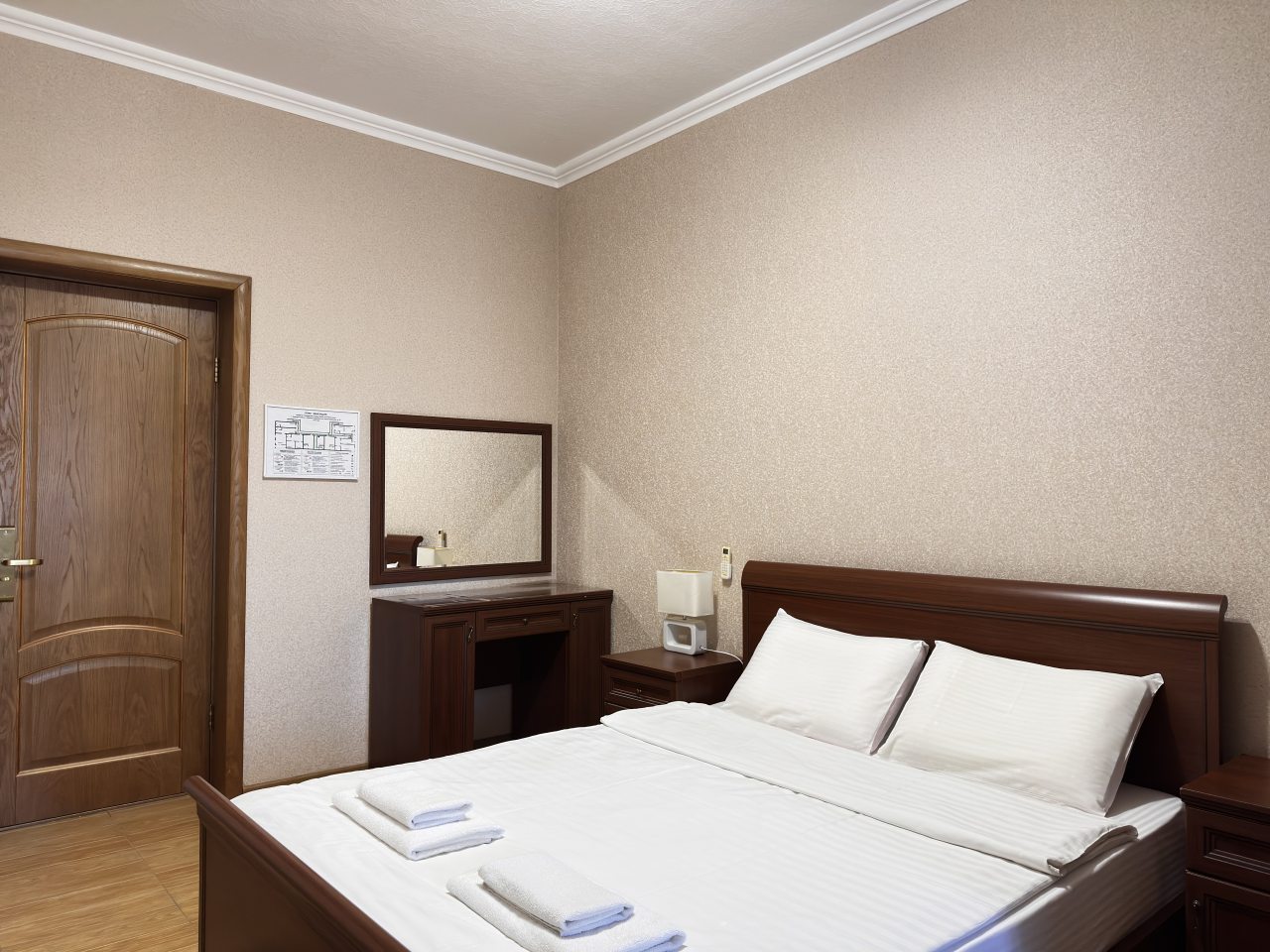 Номера комфортабельные, со всеми удобствами, включая кровать с качественным матрасом, набор полотенец, шкаф, прикроватные тумбы и лампы, собственный санузел с необходимой сантехникой.