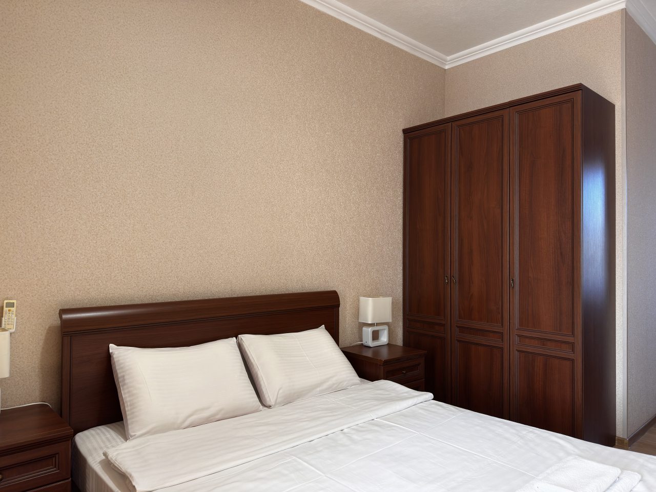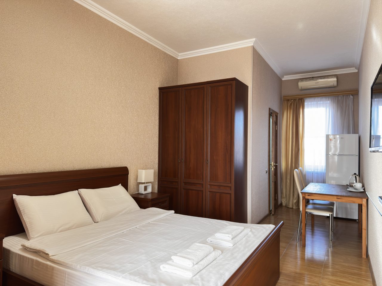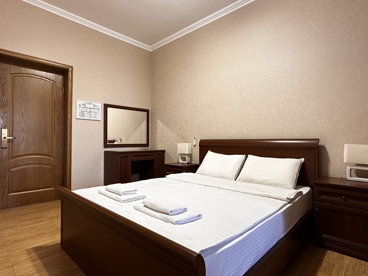 Номера комфортабельные, со всеми удобствами, включая кровать с качественным матрасом, набор полотенец, шкаф, прикроватные тумбы и лампы, собственный санузел с необходимой сантехникой.