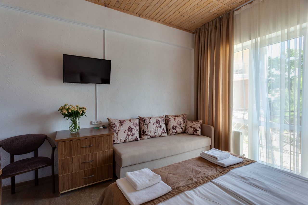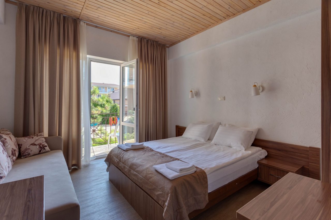 В гостевом доме было идеально чисто, чувствовалось, что хозяева заботятся о своих гостях. Мебель в хорошем состоянии, постельное белье свежее, в ванной комнате все блестит. Одним из главных плюсов является балкон, где мы проводили вечера, наслаждаясь свежим воздухом и прекрасными видами. Для семей с детьми здесь предусмотрена детская площадка, что стало настоящим спасением для нас. Вечерами мы собирались у мангала, жарили шашлыки и общались с другими гостями.