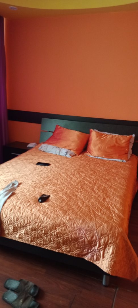 Веселенький дизайн номера. Номер чистый, есть все необходимое для ночевки: каждому гостю - тапочки, два полотенца, туалетные принадлежности: гель, шампунь, щетки, бритвы, мыло. Вешалки в коридоре, шкаф-купе в комнате, тумбочки, розеток для зарядок достаточное количество. Чайник, фен, работающий без заморочек телевизор и wifi. На двуспальную кровать с двумя гостями- одно одеяло, второе нашлось в шкафу, но за пододеяльником пришлось спускаться на ресепшен. Белье белое, чистое, без синтетики, спалось хорошо.