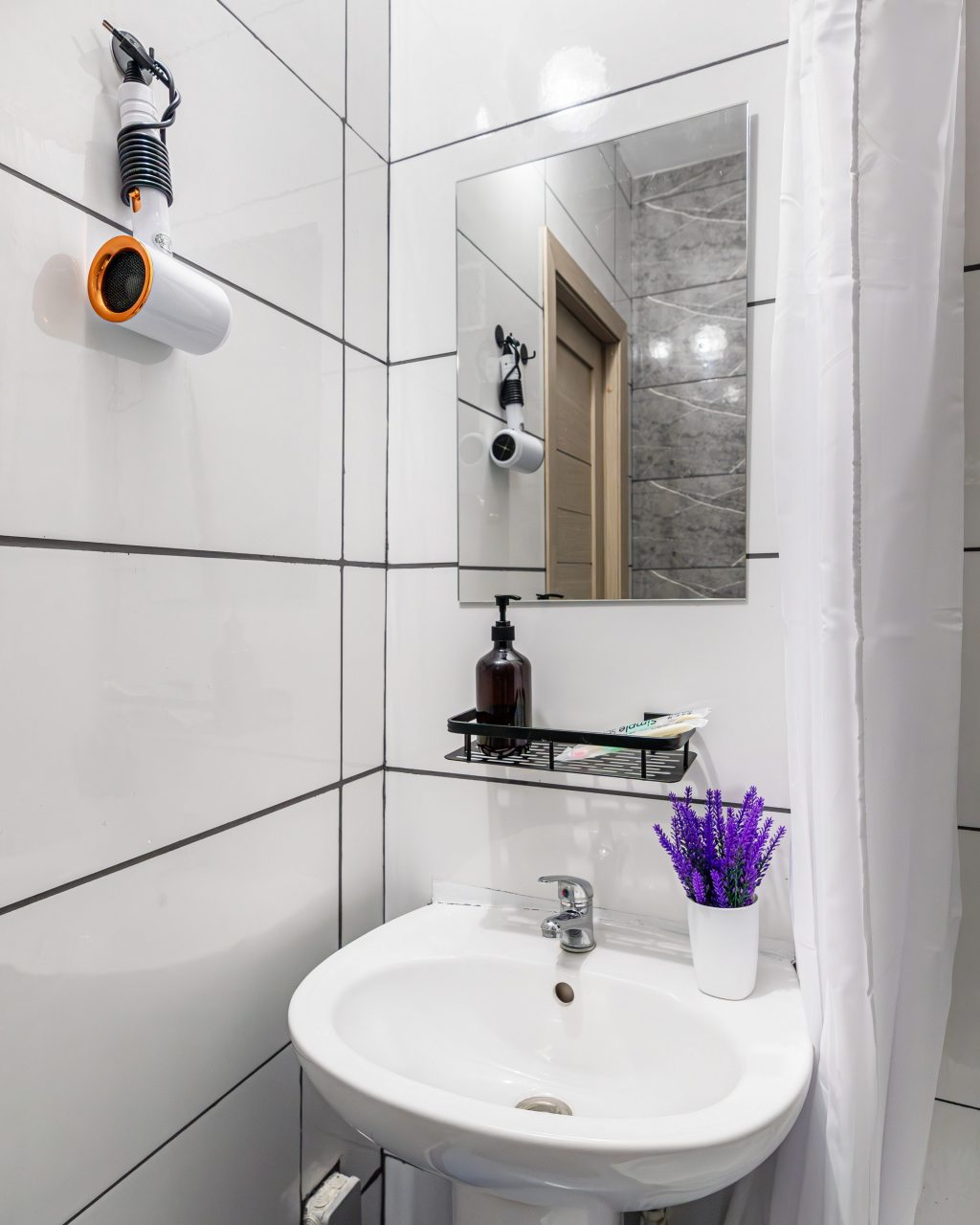 Внутри вас ожидает удобная двуспальная кровать с телевизором, вместительный шкаф, мягкий диван, стиральная машина, санузел с душевой, феном и туалетно-гигиеническими средствами.
