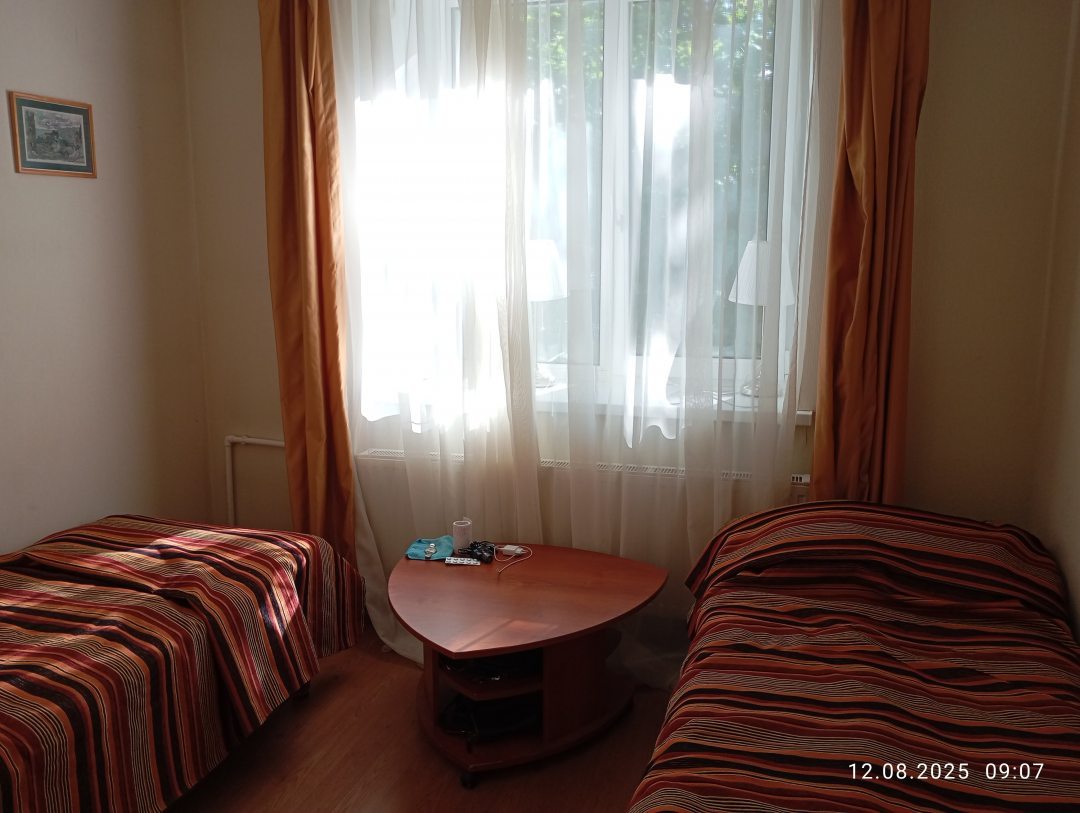 Провели в санатории 8 дней вместе с супругом. Брали двухместный комфорт, оформляли бронь заранее. Номер нам понравился он был чистым, опрятным и светлым. Уборки проводились регулярно. На территории санатория работает свой ресторан. Можно также воспользоваться и услугами сауны. Любители спорта посещают фитнес-тренировки. Хорошее место, где можно отдохнуть без лишних переплат.