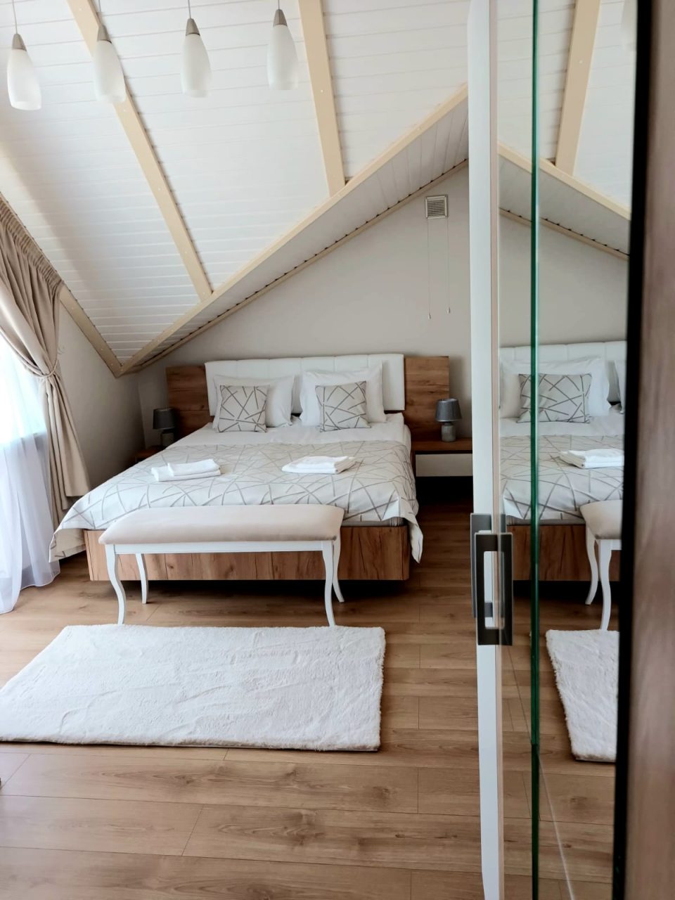 Апартаменты находятся рядом с пляжем, в них поддерживается современный интерьер. Пользоваться всеми преимуществами в квартире было удобно. Ванная комната в апартаментах большая, есть в ней полотенцесушитель, вмонтирована перегородка для принятия душа. Холодильник большой, в нем мы смогли разместить и продукты, и напитки. В жаркое время года поверьте, это важное условие.