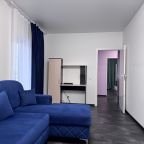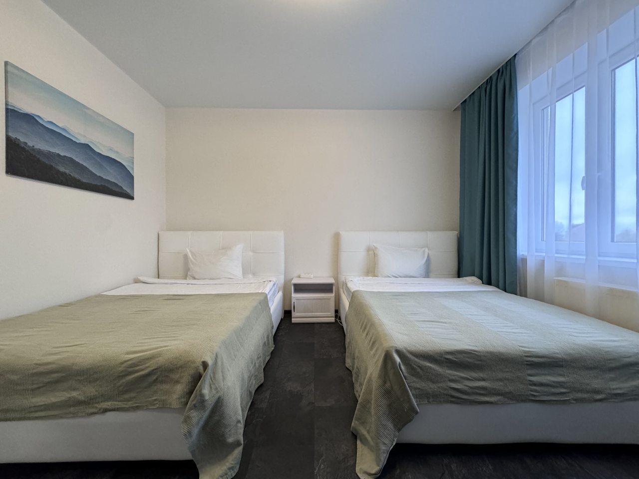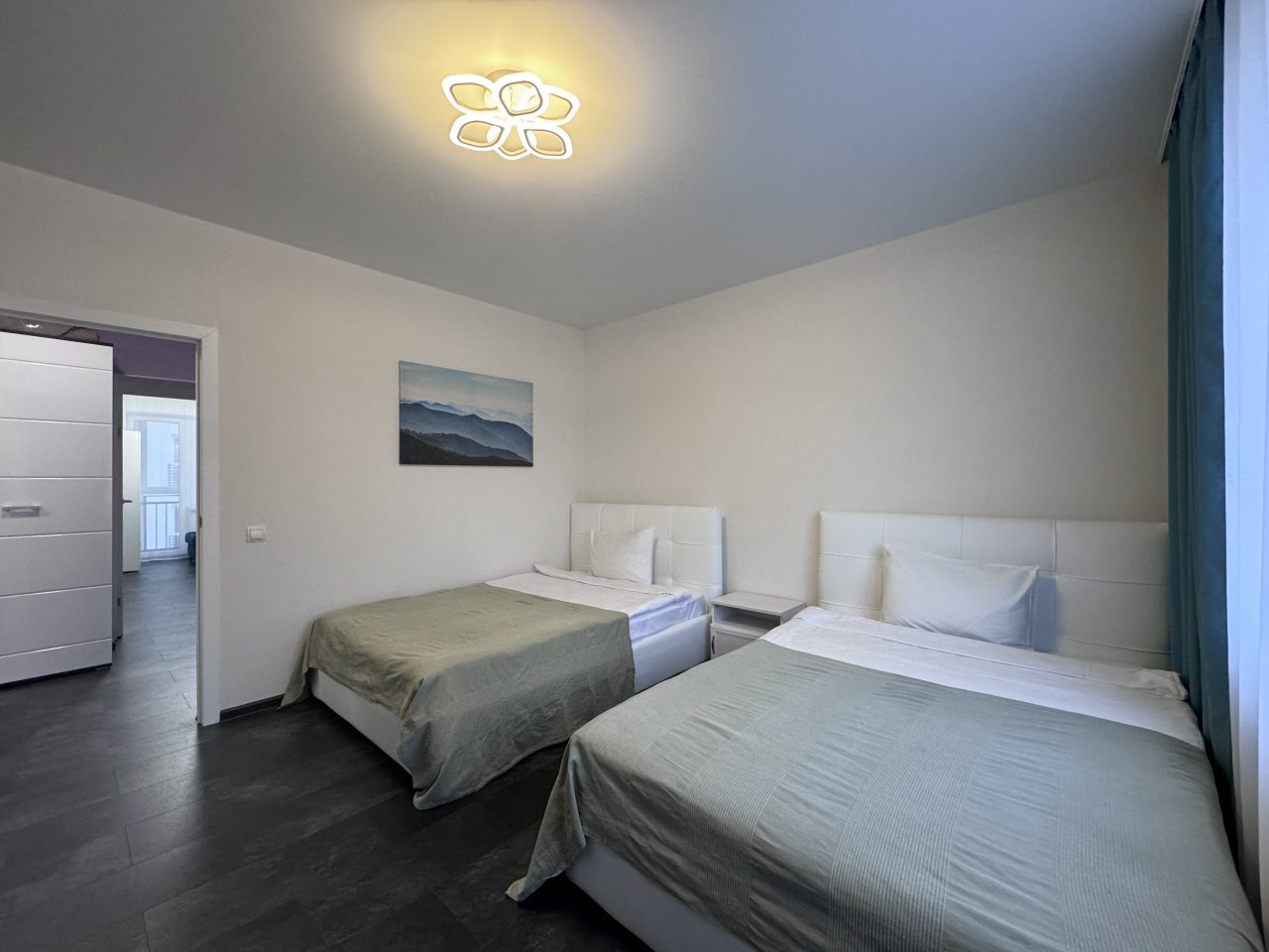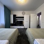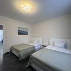 Номер с современным ремонтом оснащен большим количеством спальных мест. Такой вариант отлично подойдет для отдыха с семьей или поездки в компании друзей. Ванная комната укомплектована стиральной машиной, феном, комплектом полотенец. Установлен Wi-Fi и телевизор с кабельными каналами.