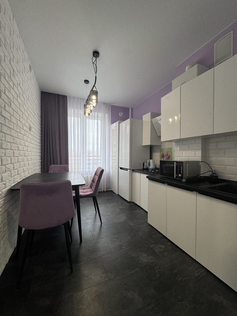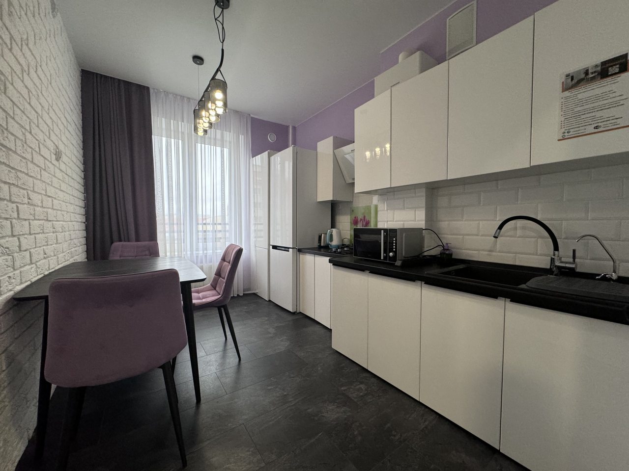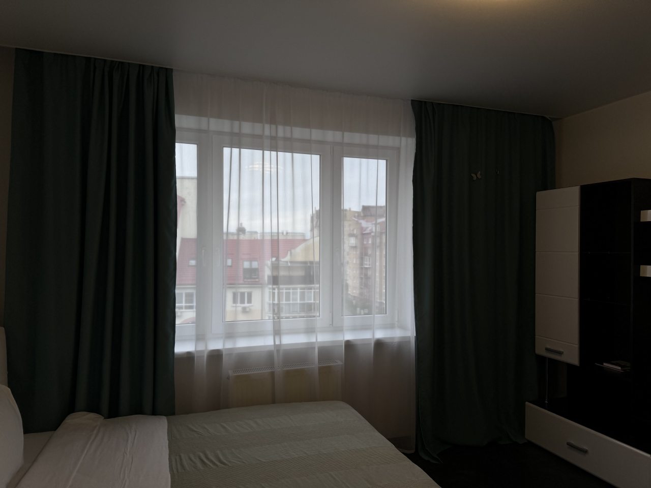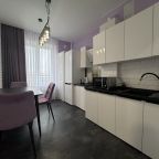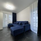 В апартаментах отличная обстановка. Солидно смотрится ремонт, нет лишних раздражителей. С балкона вид во двор интересный. Мебель хорошая, кровать удобная. Телевизор с разными каналами висит удобно перед спальным местом. Понравилась удобная ванна. И конечно кухня с хорошим наполнением. Цена считаю, что оптимальная.