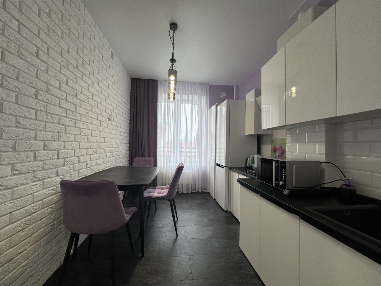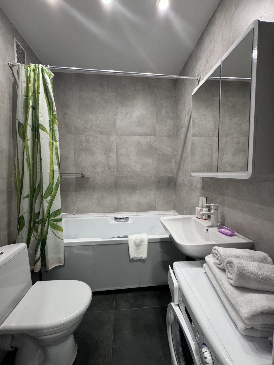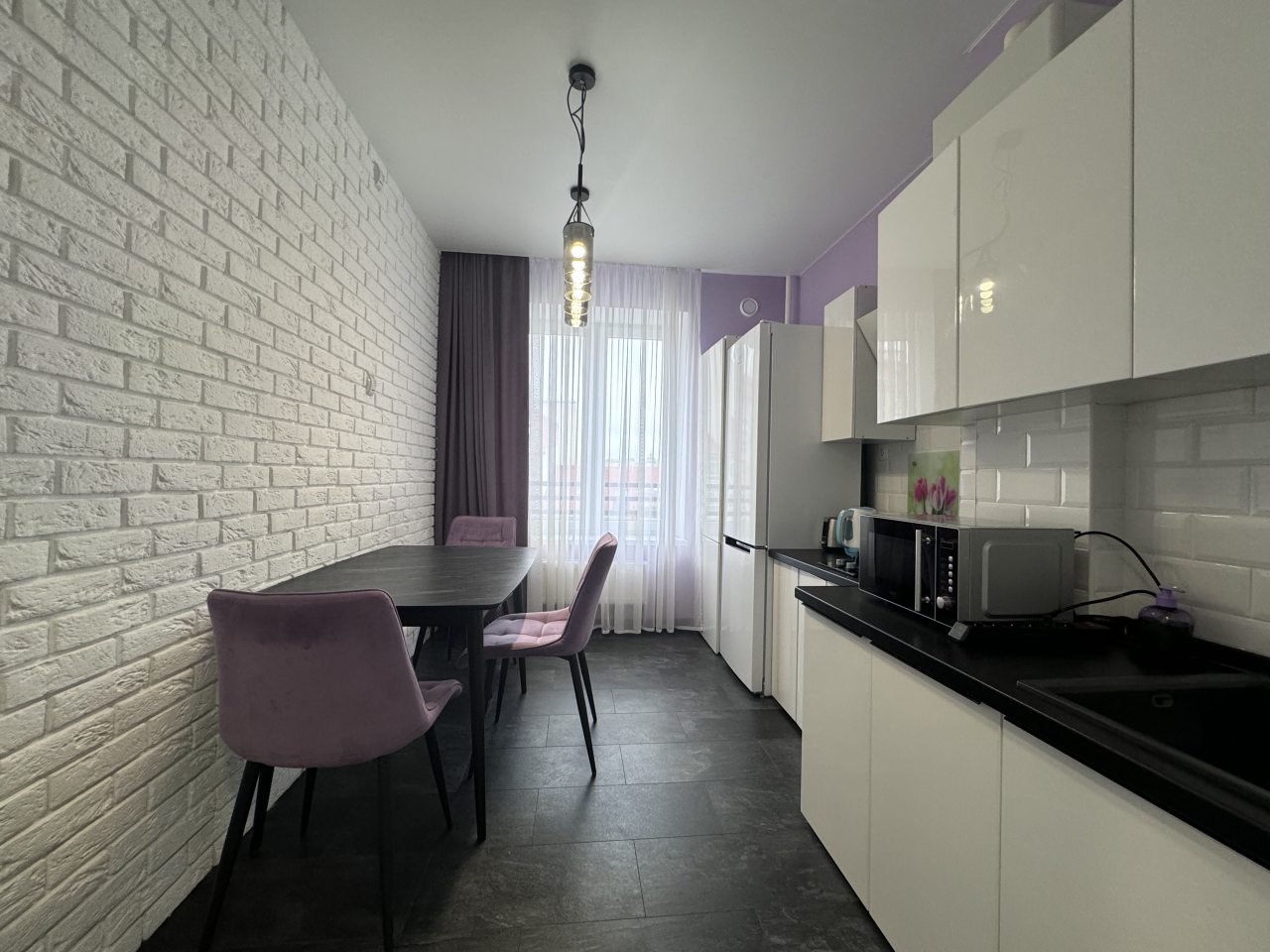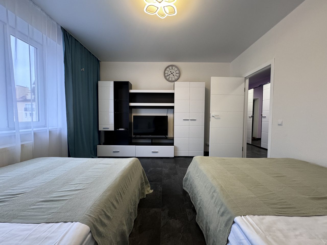 В апартаментах отличная обстановка. Солидно смотрится ремонт, нет лишних раздражителей. С балкона вид во двор интересный. Мебель хорошая, кровать удобная. Телевизор с разными каналами висит удобно перед спальным местом. Понравилась удобная ванна. И конечно кухня с хорошим наполнением. Цена считаю, что оптимальная.