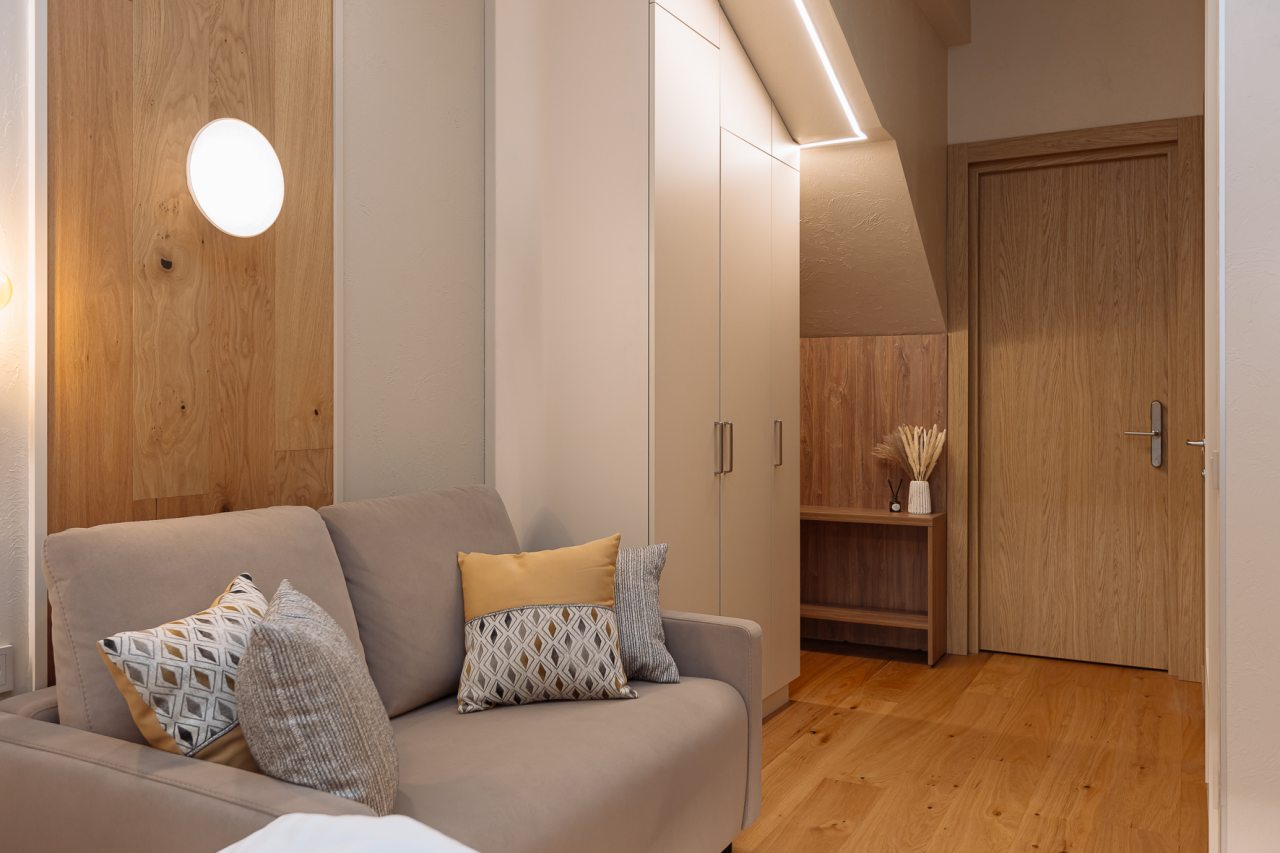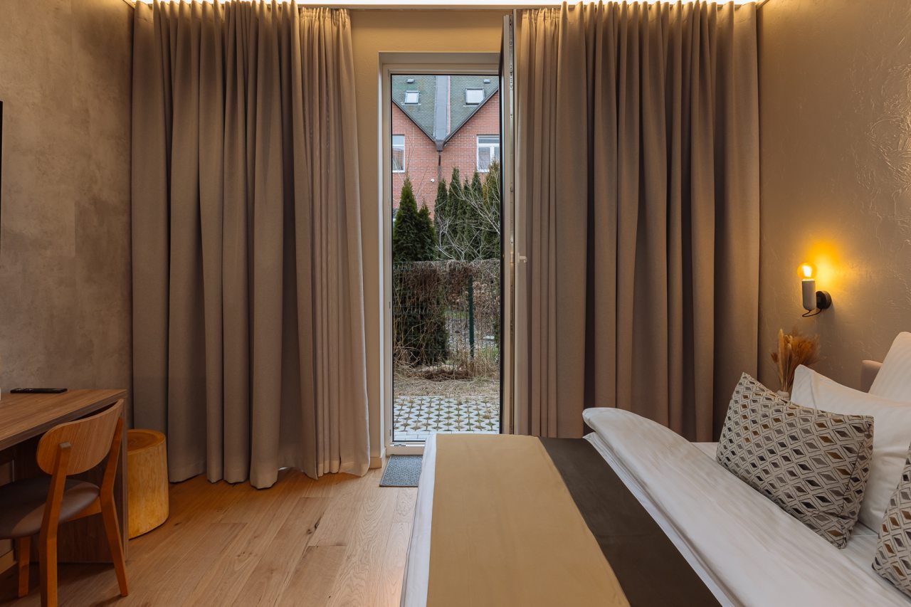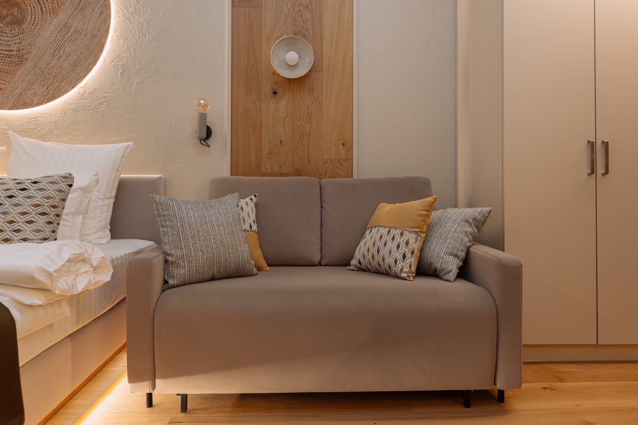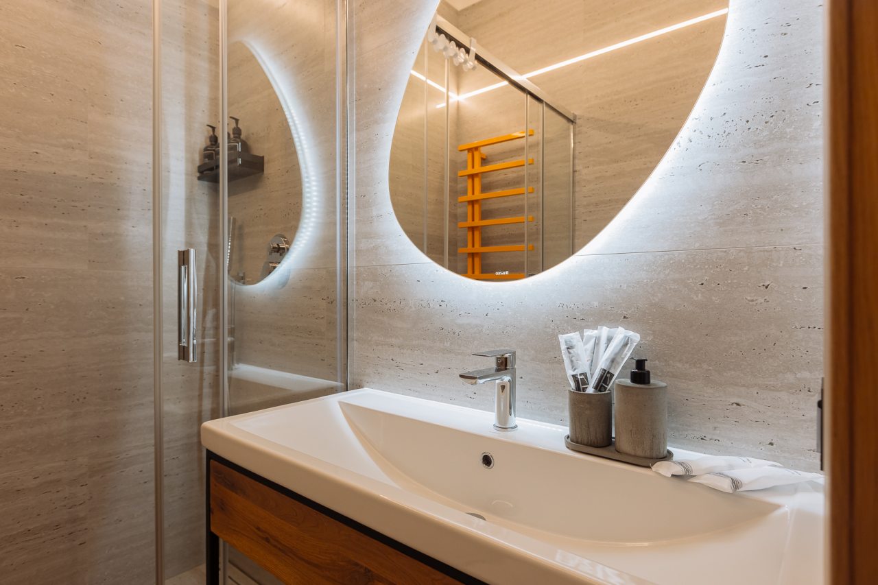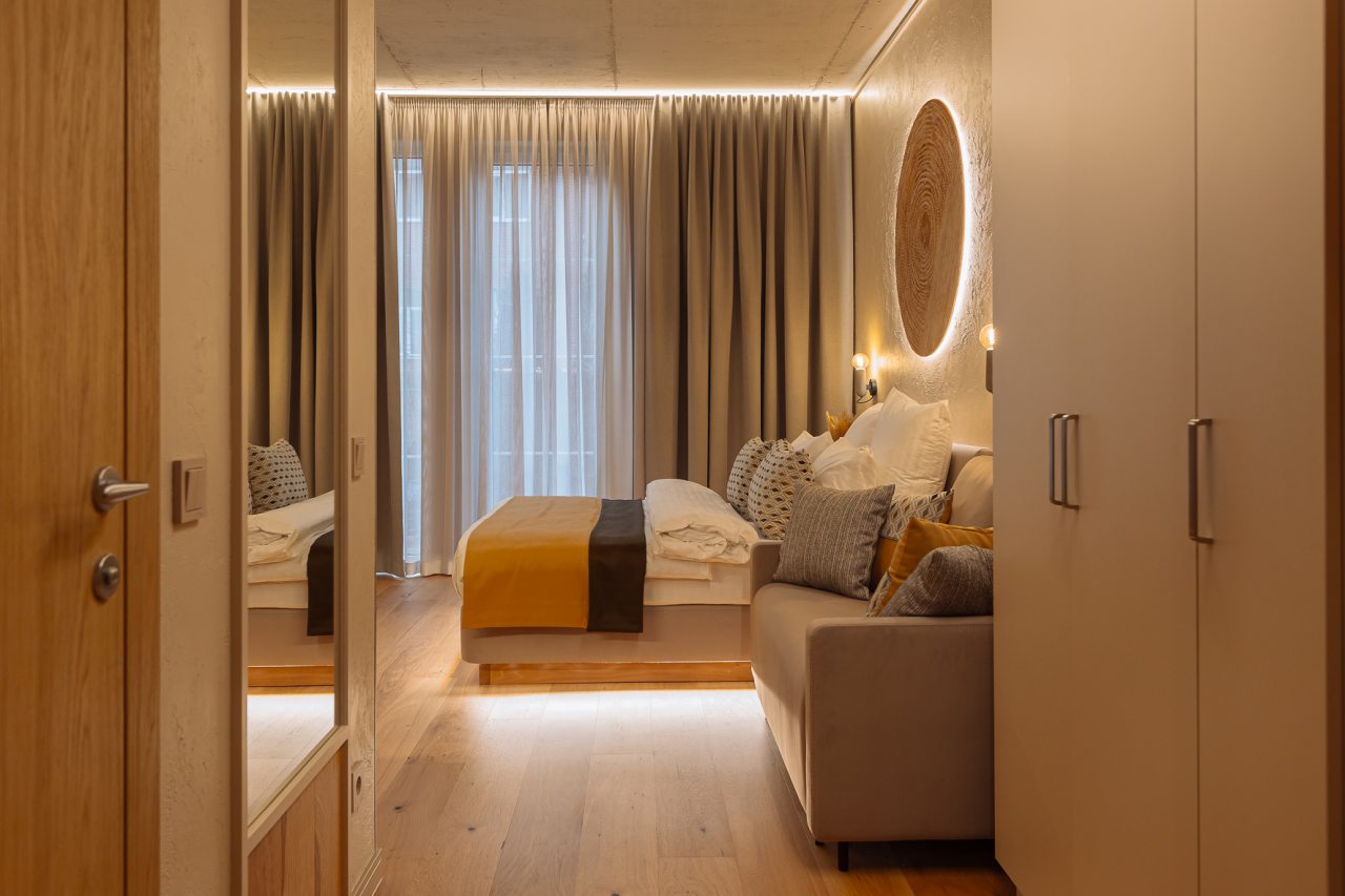 Уютные апартаменты с современным ремонтом оснащены двуспальной кроватью, диваном, шкафом, телевизором, высокоскоростным интернетом, затемненными шторами, гладильными принадлежностями и др. Санузел укомплектован необходимой сантехникой, средствами личной гигиены, гигиеническим душем, стиральной машиной.