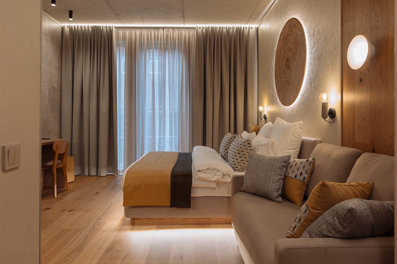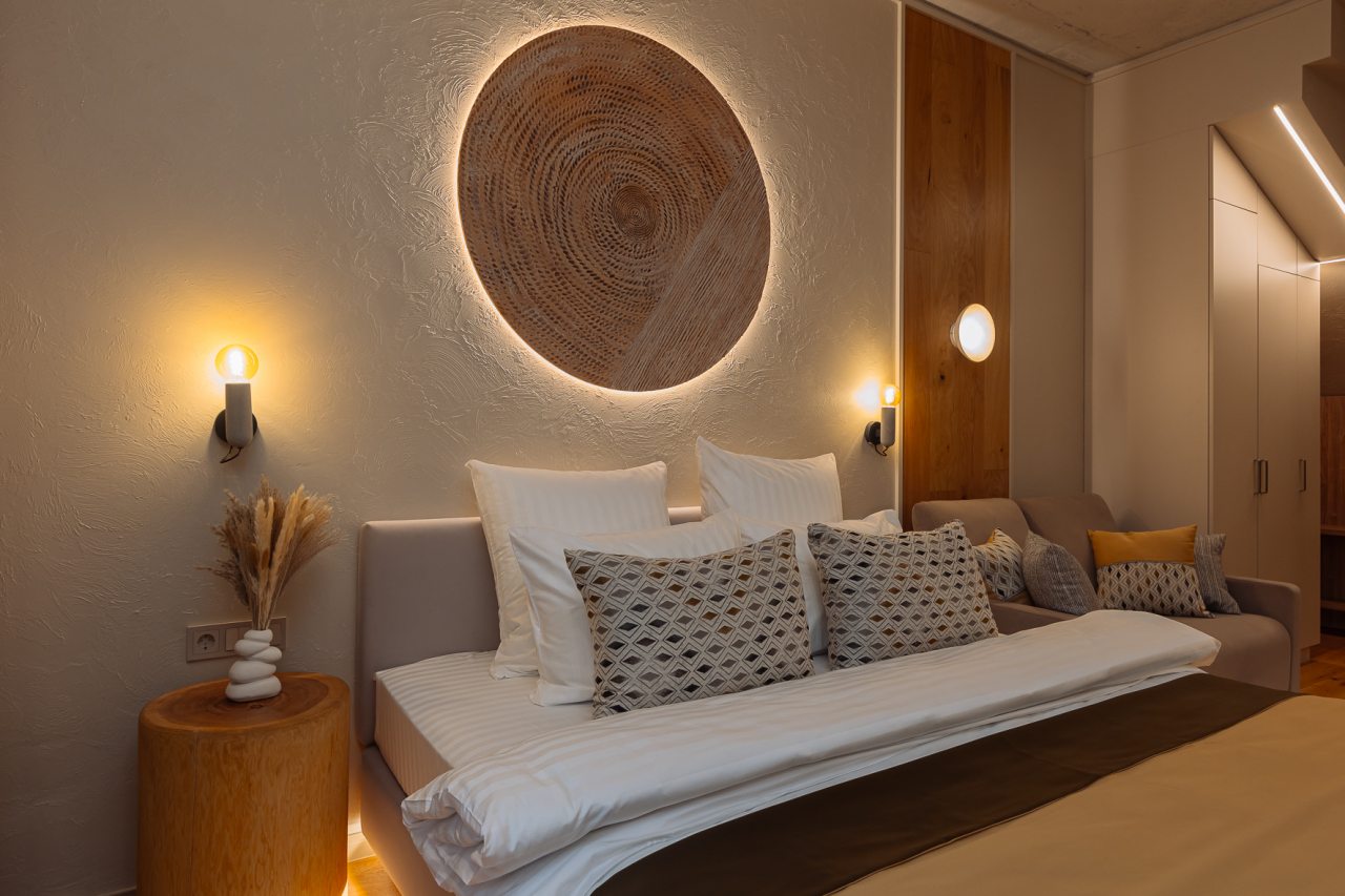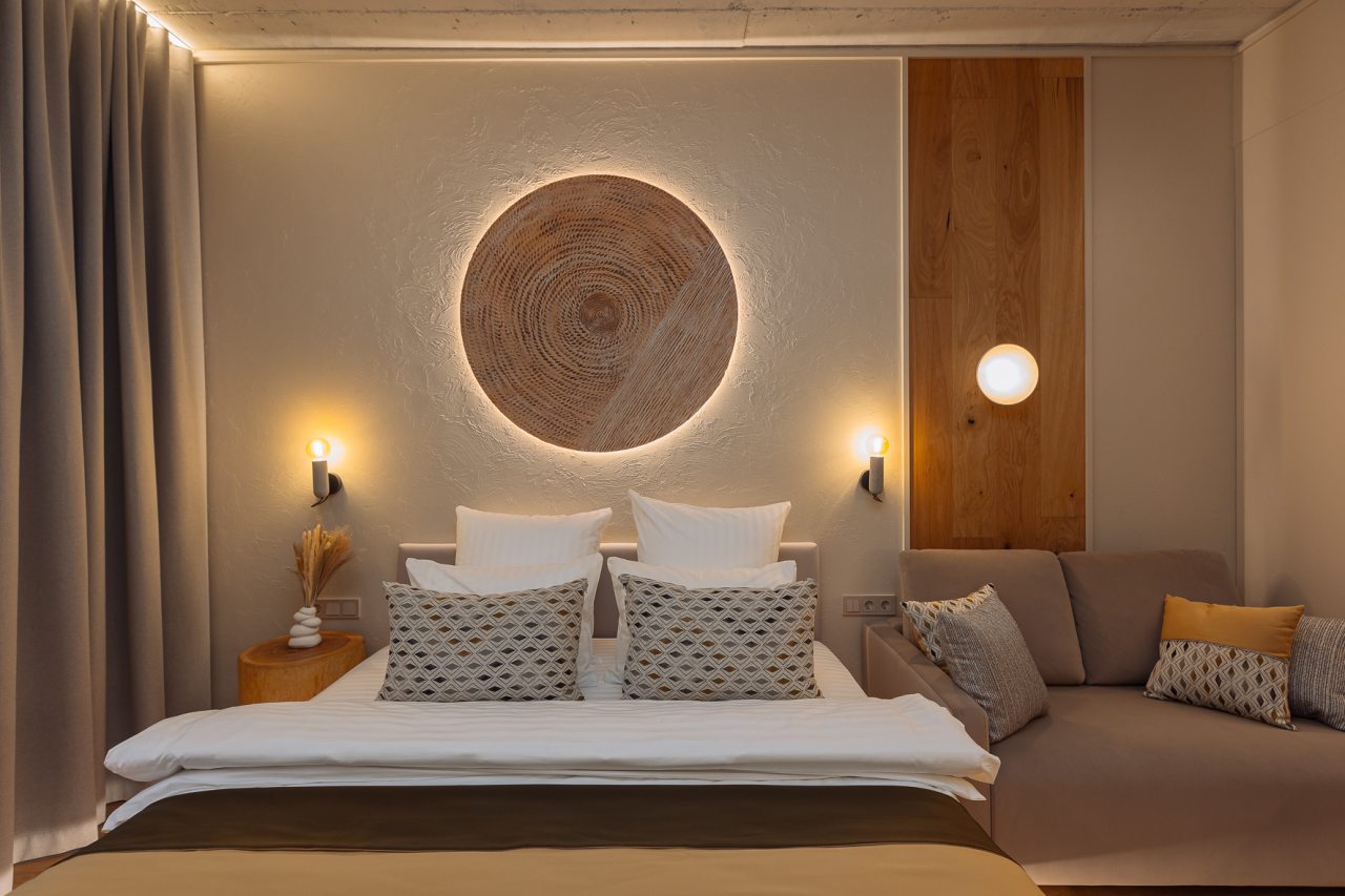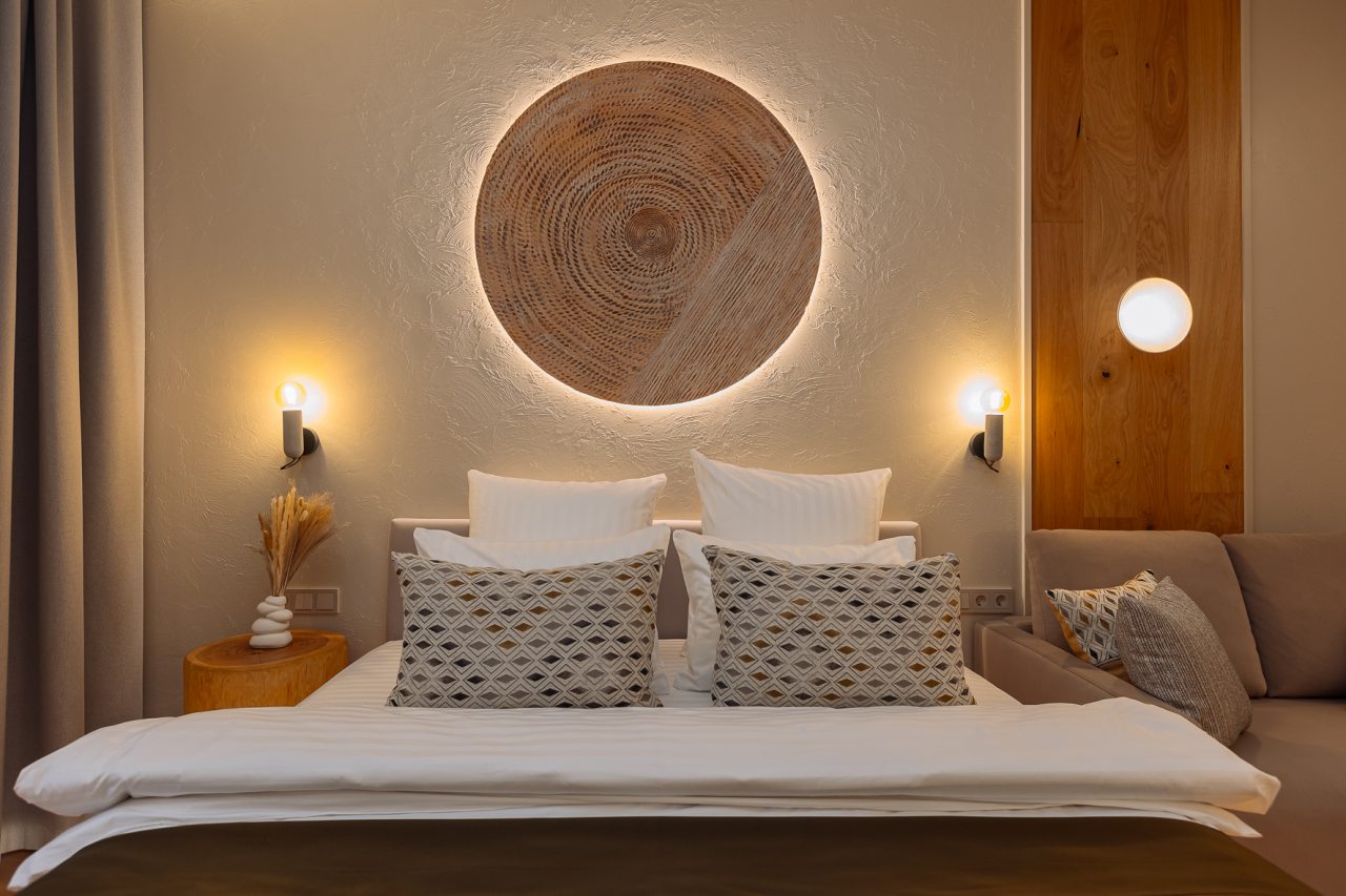 Уютные апартаменты с современным ремонтом оснащены двуспальной кроватью, диваном, шкафом, телевизором, высокоскоростным интернетом, затемненными шторами, гладильными принадлежностями и др. Санузел укомплектован необходимой сантехникой, средствами личной гигиены, гигиеническим душем, стиральной машиной.