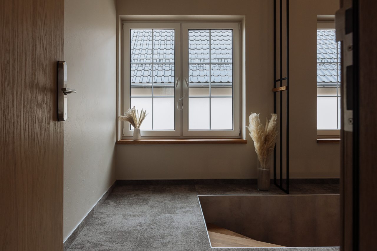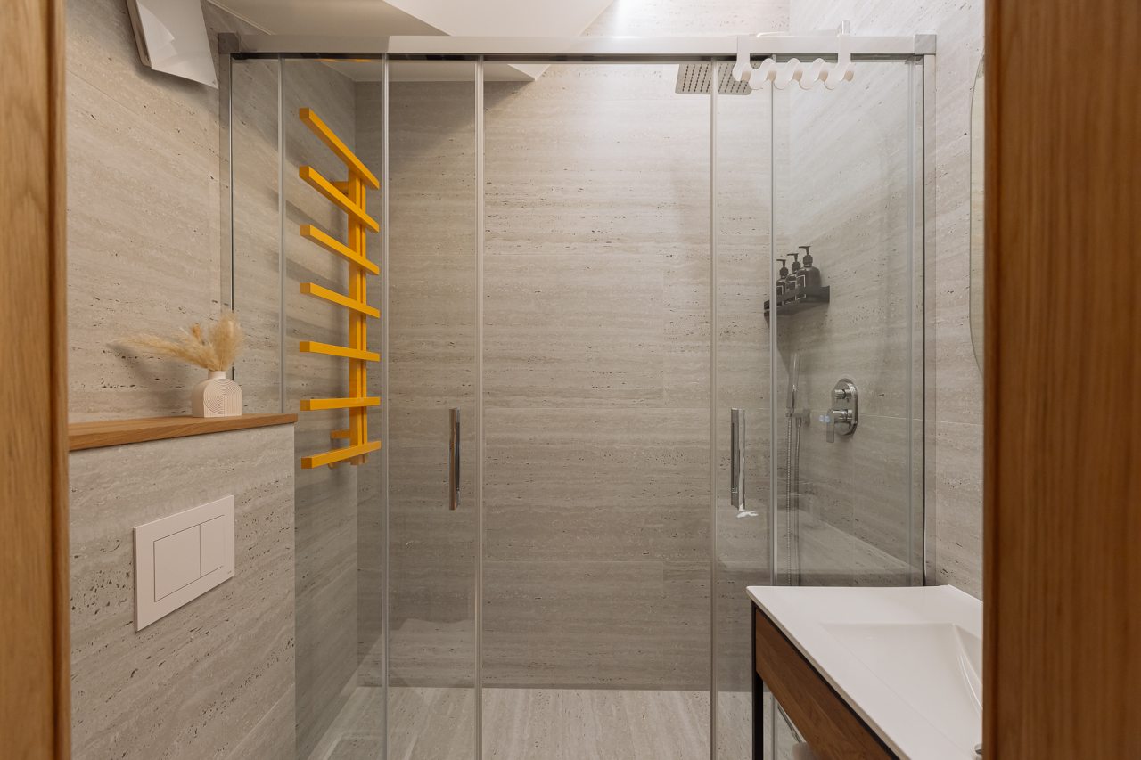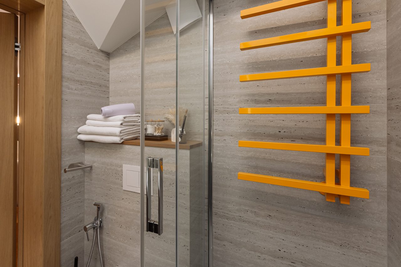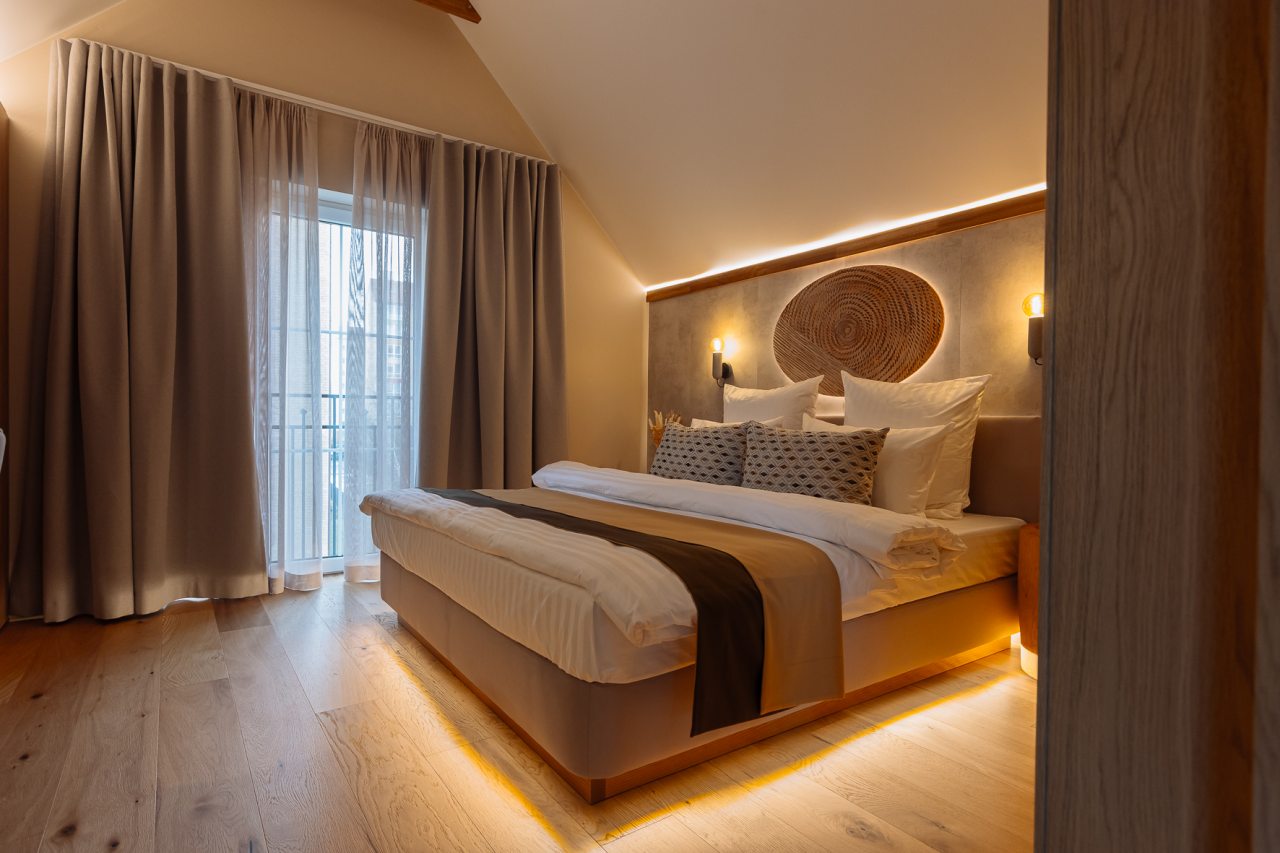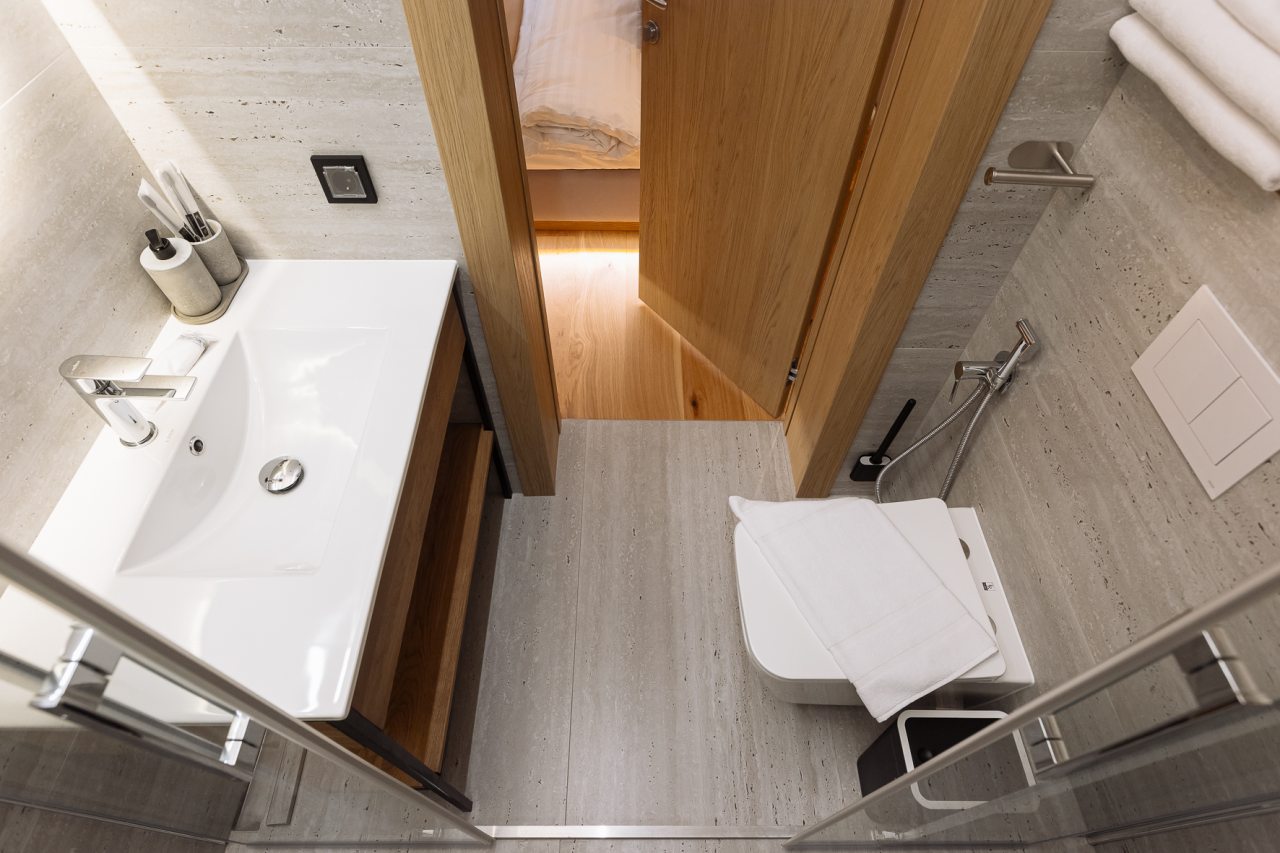 Апартаменты оформлены в приятных бежевых тонах и современном стиле интерьера. Они укомплектованы мебелью и техникой, необходимой для времяпровождения и отдыха: двуспальная кровать с удобным матрасом, кондиционер, телевизор с плоским экраном, рабочий стол, вместительный шкаф и зеркало. Ванная комната оснащена гигиеническими средствами и набором полотенец.