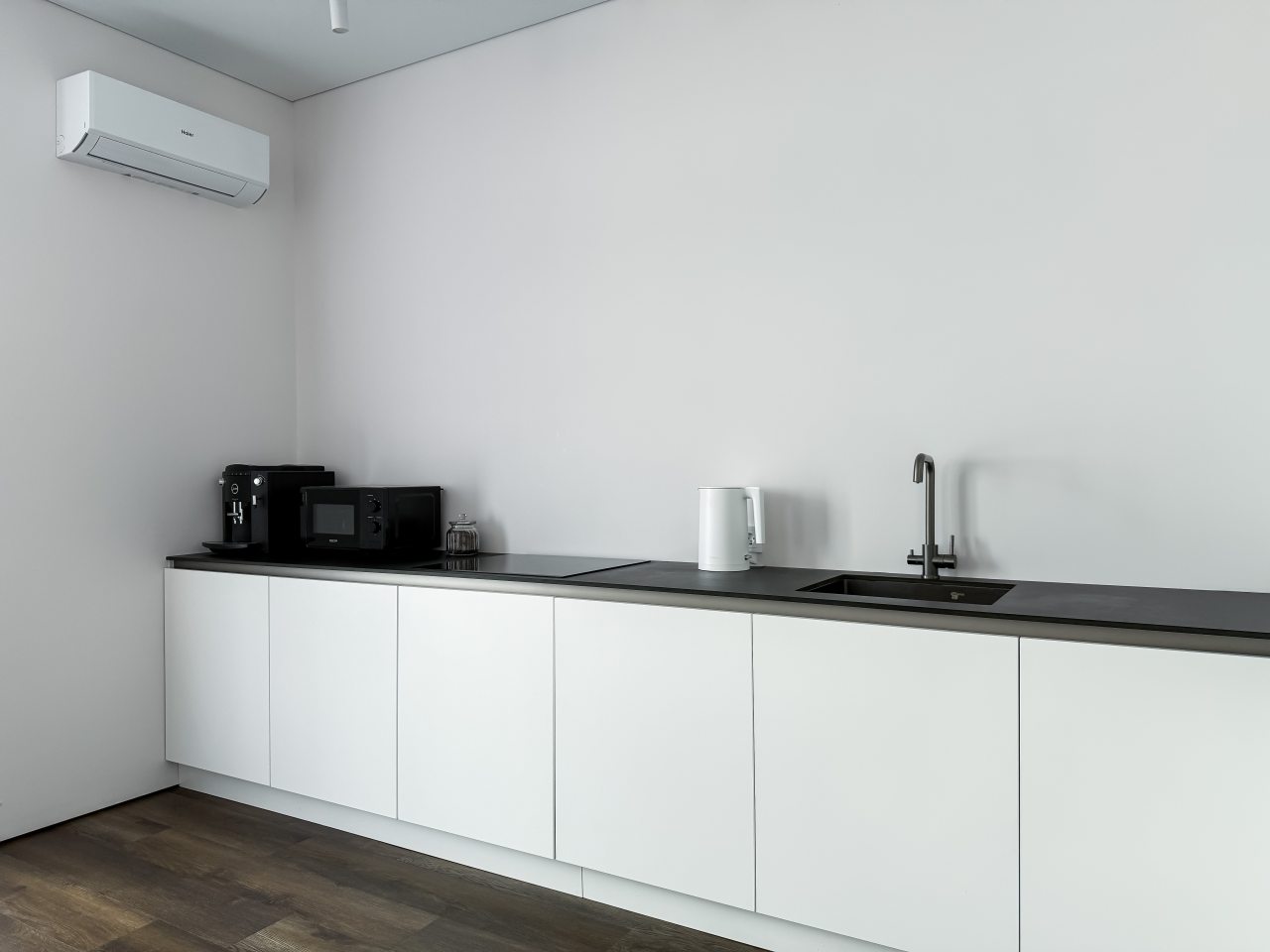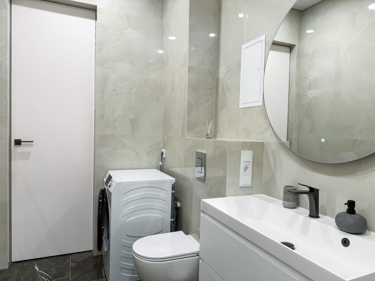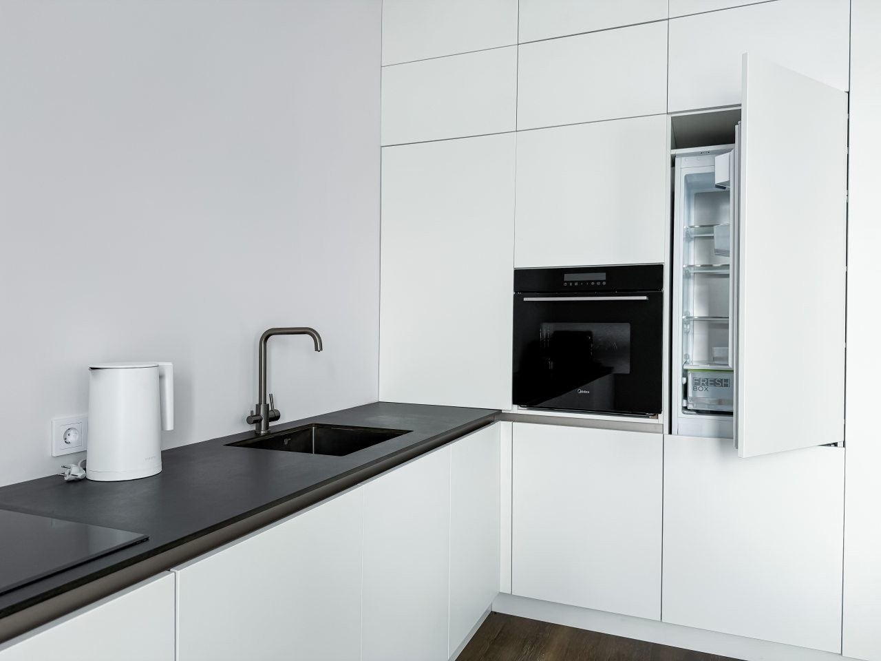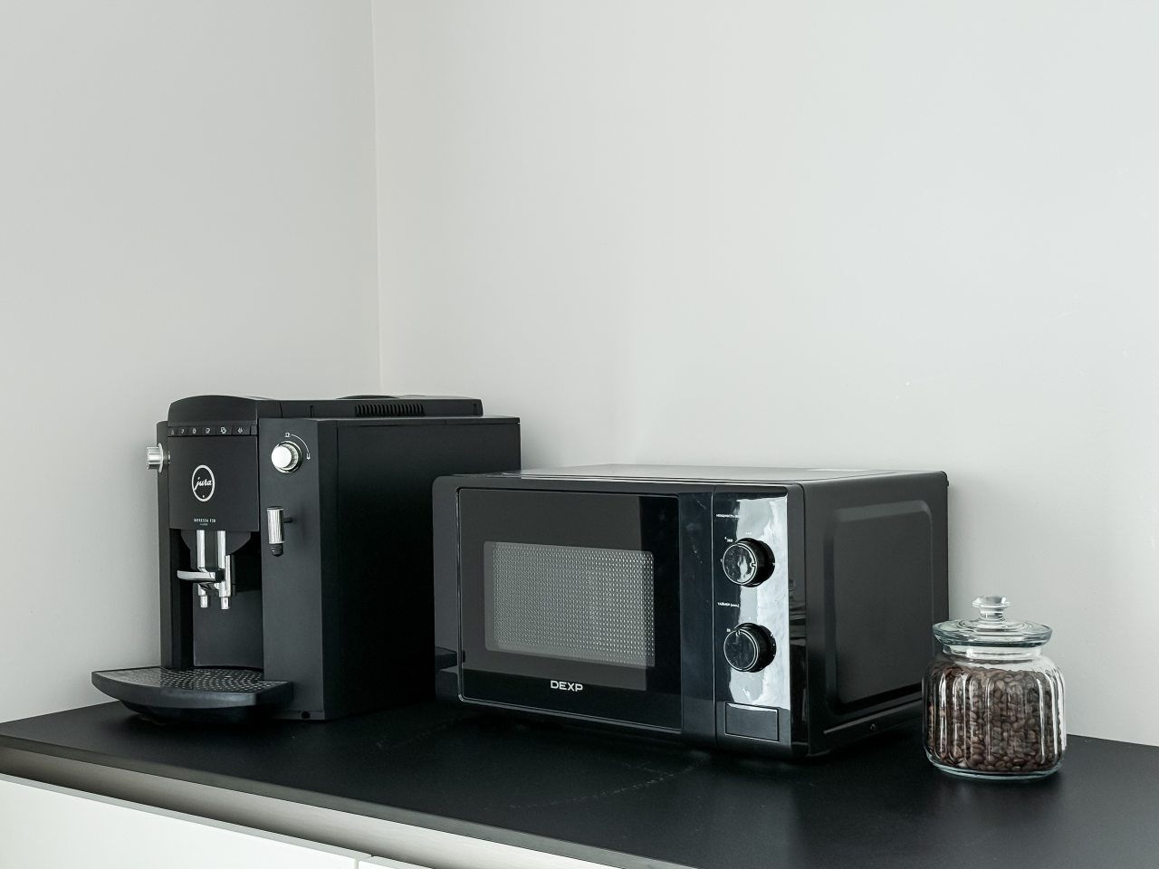 Кухня порадует вас наличием кофемашины, чайника, варочной панели, микроволновой печи и посудомоечной машины, что позволит вам готовить и наслаждаться любимыми домашними блюдами в любое время суток.