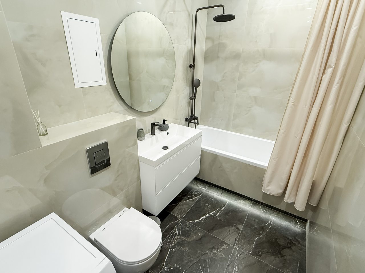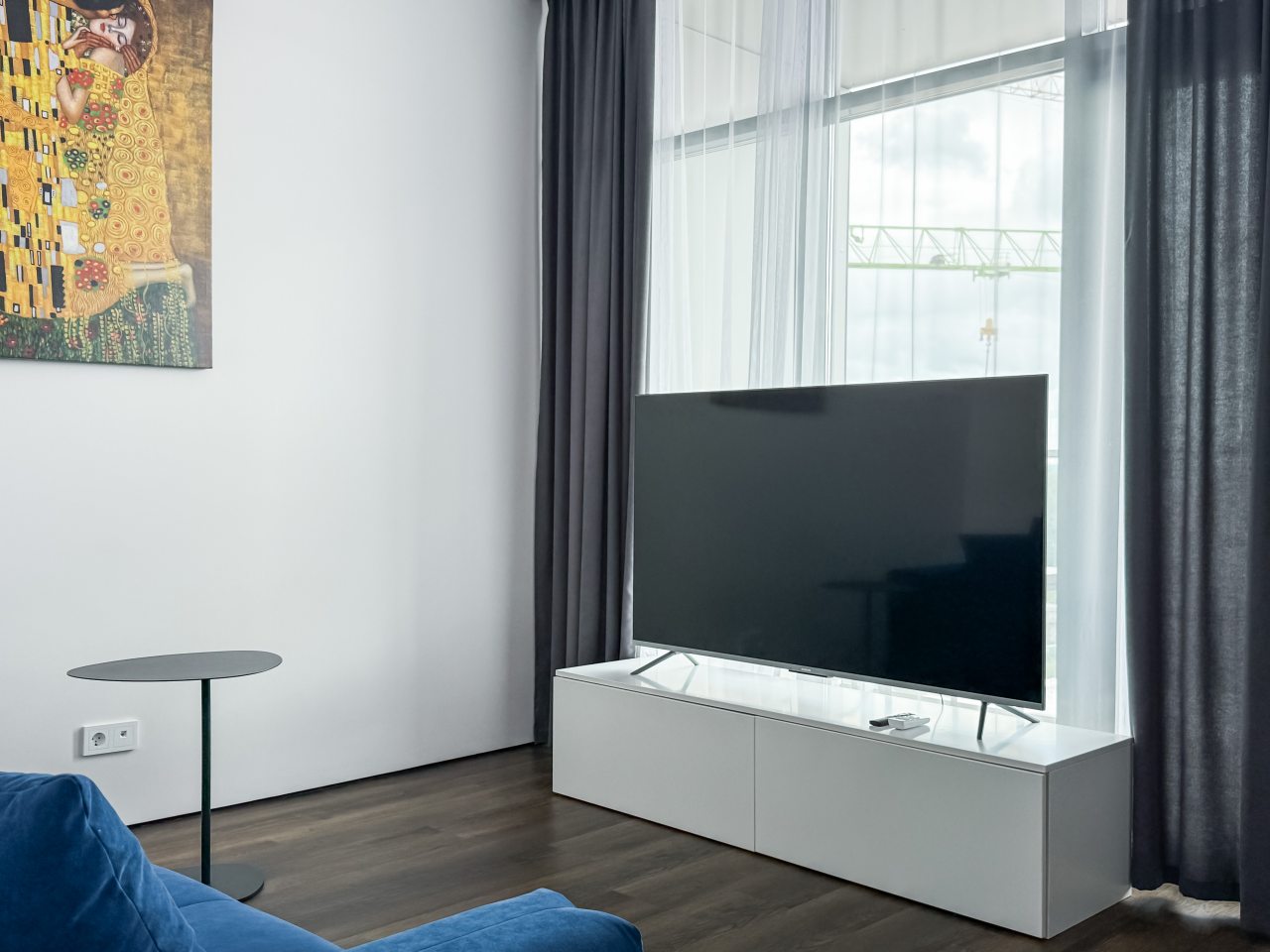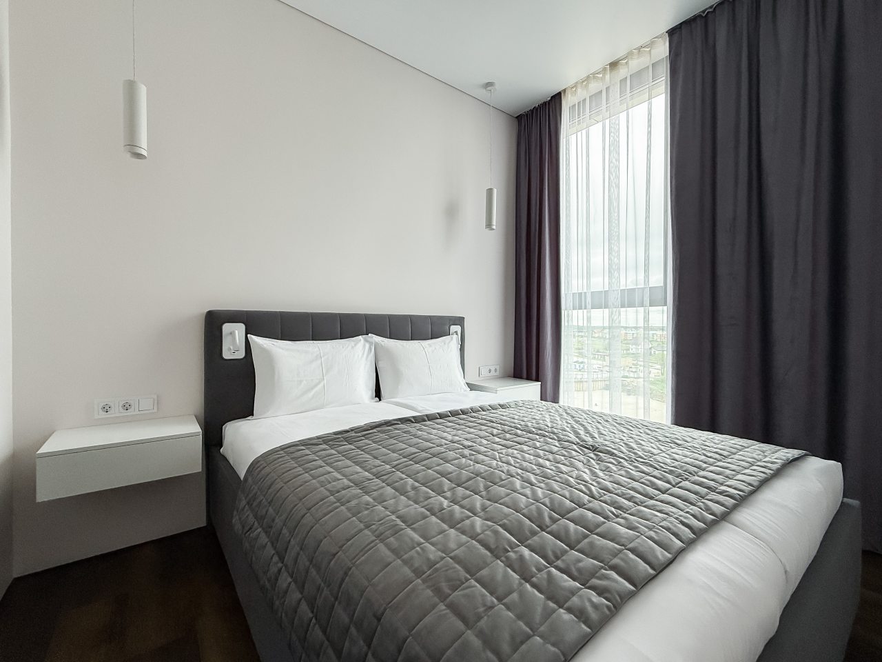 Каждые апартаменты имеют уникальный дизайн, благодаря чему вы можете выбрать то, что подходит именно вам. Для отдыха гостей предусмотрена кровать с мягким изголовьем, сплит-система, настенные бра для мягкого вечернего света, Wi-Fi и ЖК-телевизор. В ванной комнате вас ожидает комплект чистых полотенец, необходимые туалетно-гигиенические средства, стиральная машина.