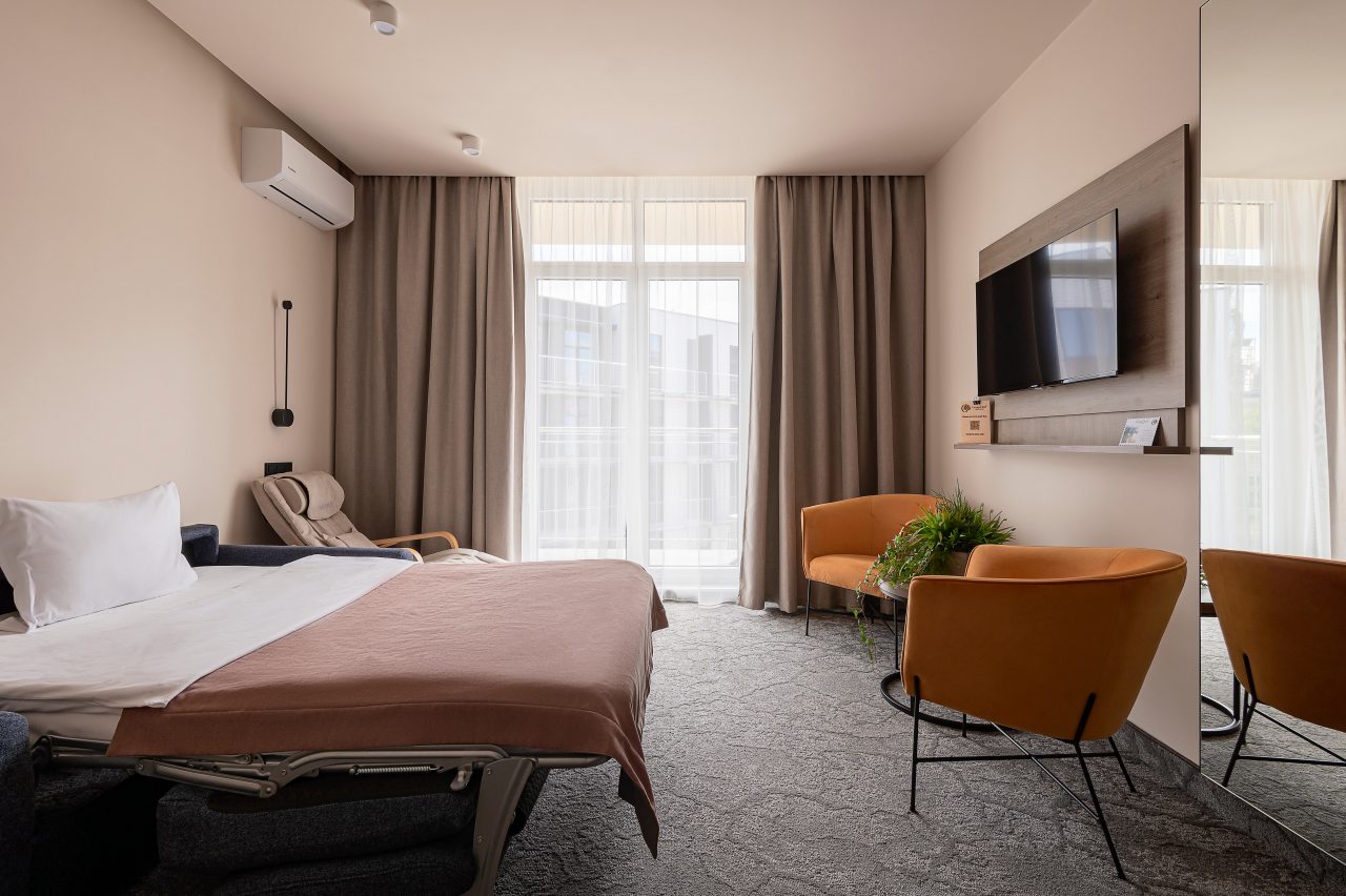 Размещение детей в номере возможно с предоставлением дополнительных спальных мест по предварительному запросу. Для маленьких гостей мы можем предоставить детскую кроватку. Пожалуйста, сообщите о количестве и возрасте детей при бронировании, чтобы мы могли обеспечить максимальный комфорт вашему отдыху.