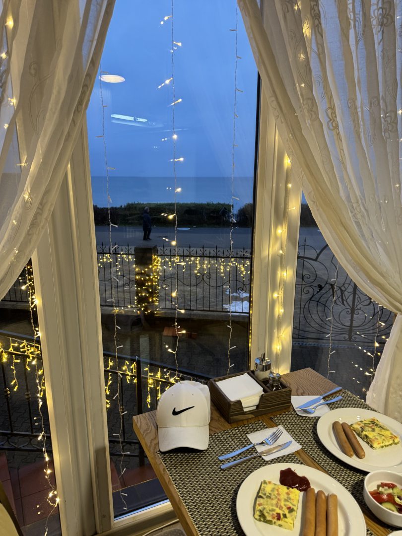 1. Рядом с морем. Променад, не далеко есть и магазины и другие рестораны. 2. Удобная планировка и в отеле и в номере на третьем этаже.