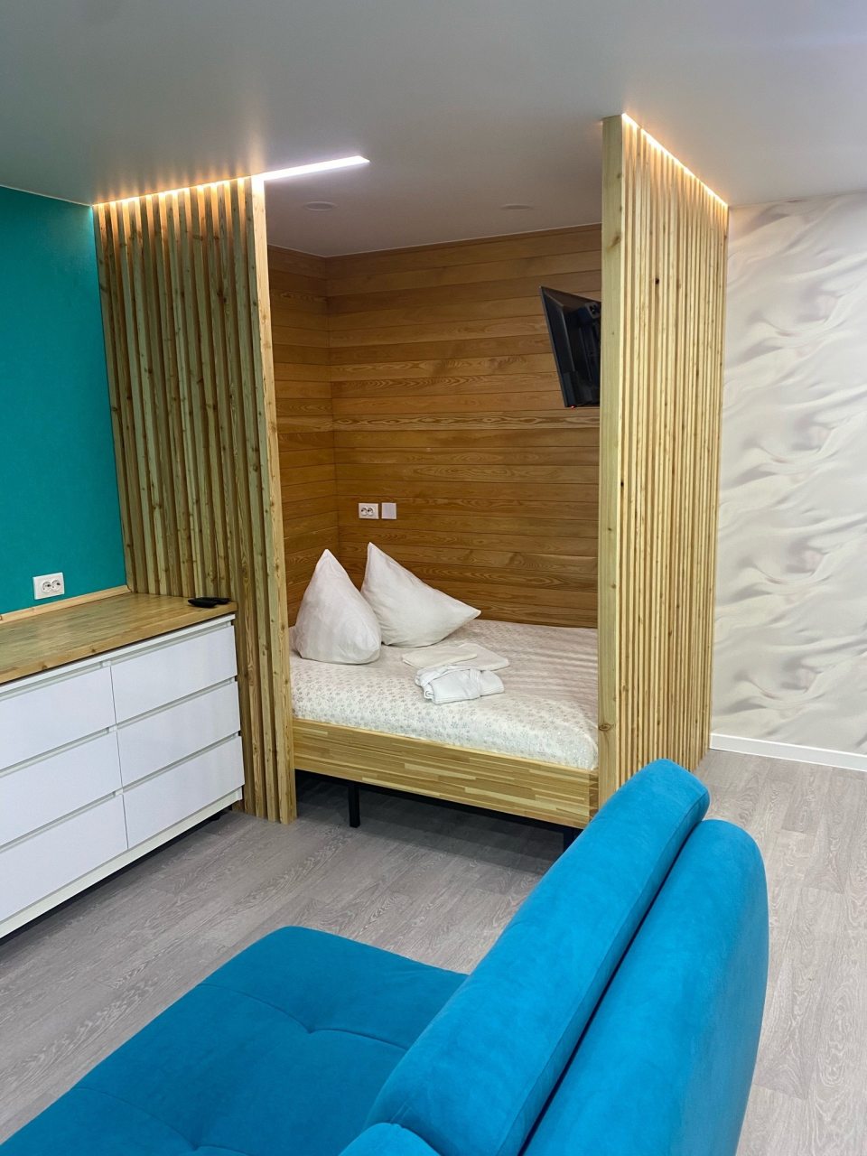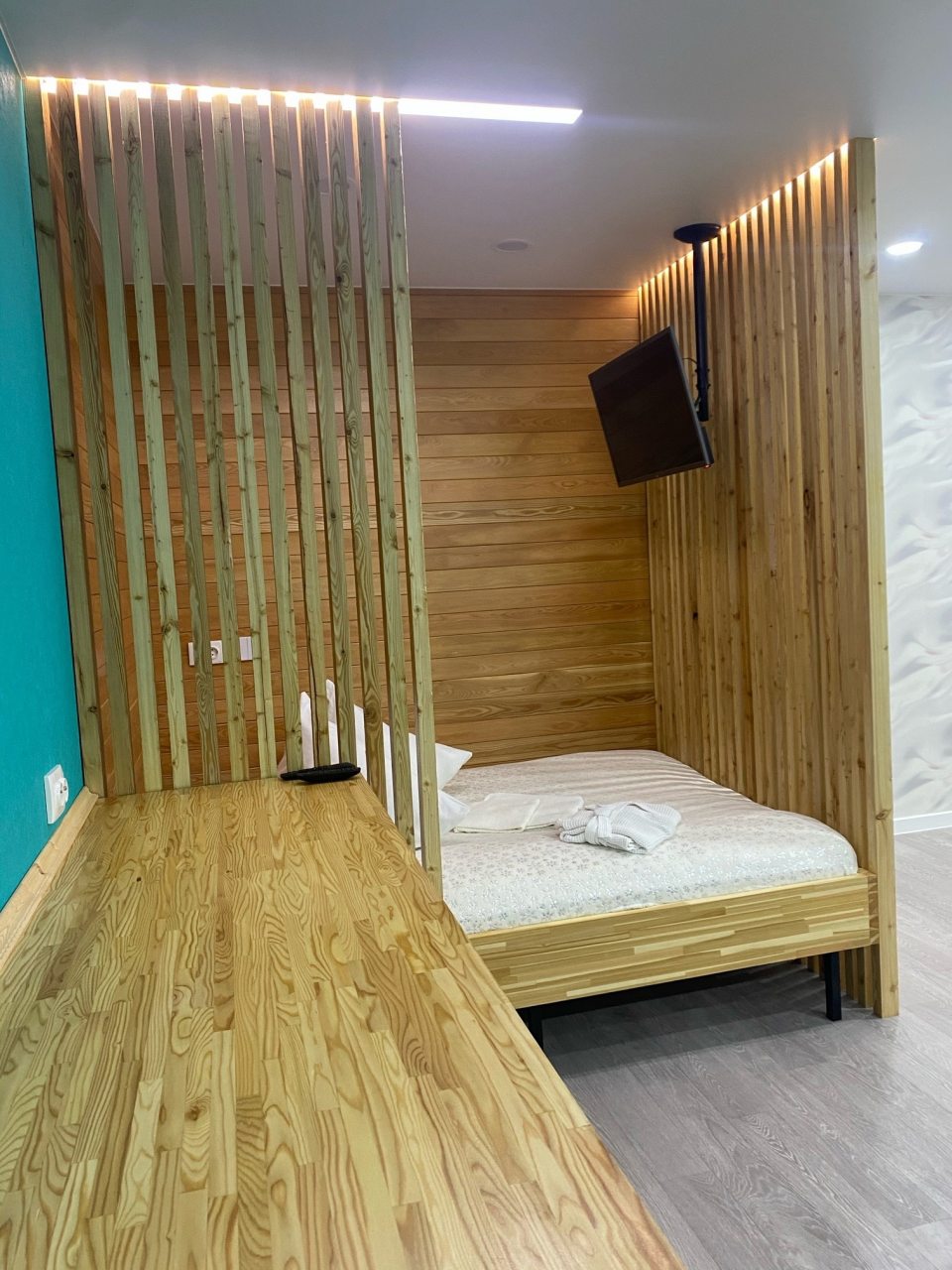 Для комфорта и удобства гостей есть удобная кровать, шкаф, различные источники освещения, гладильные принадлежности, сушилка для вещей, санузел с душем, телевизор и другая необходимая мебель и техника.