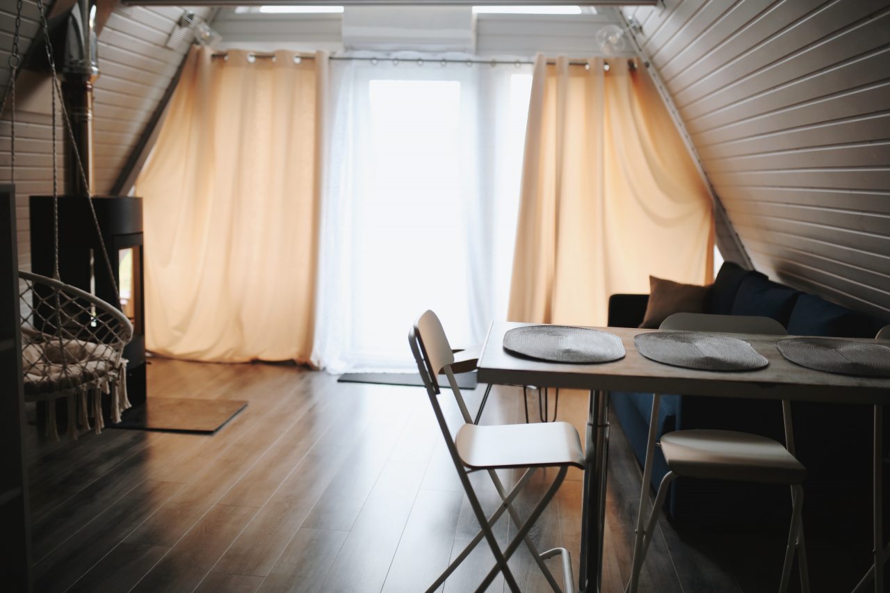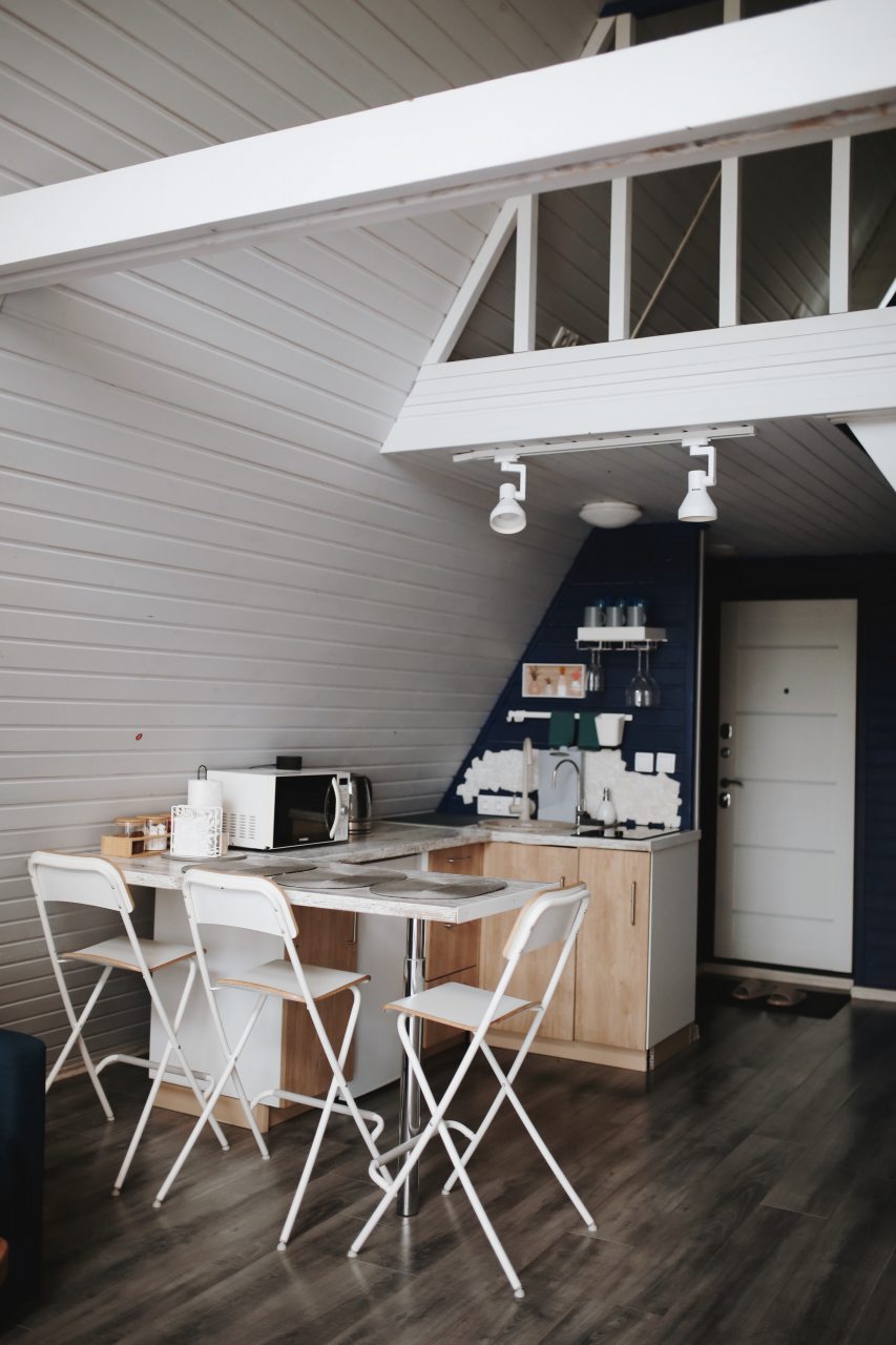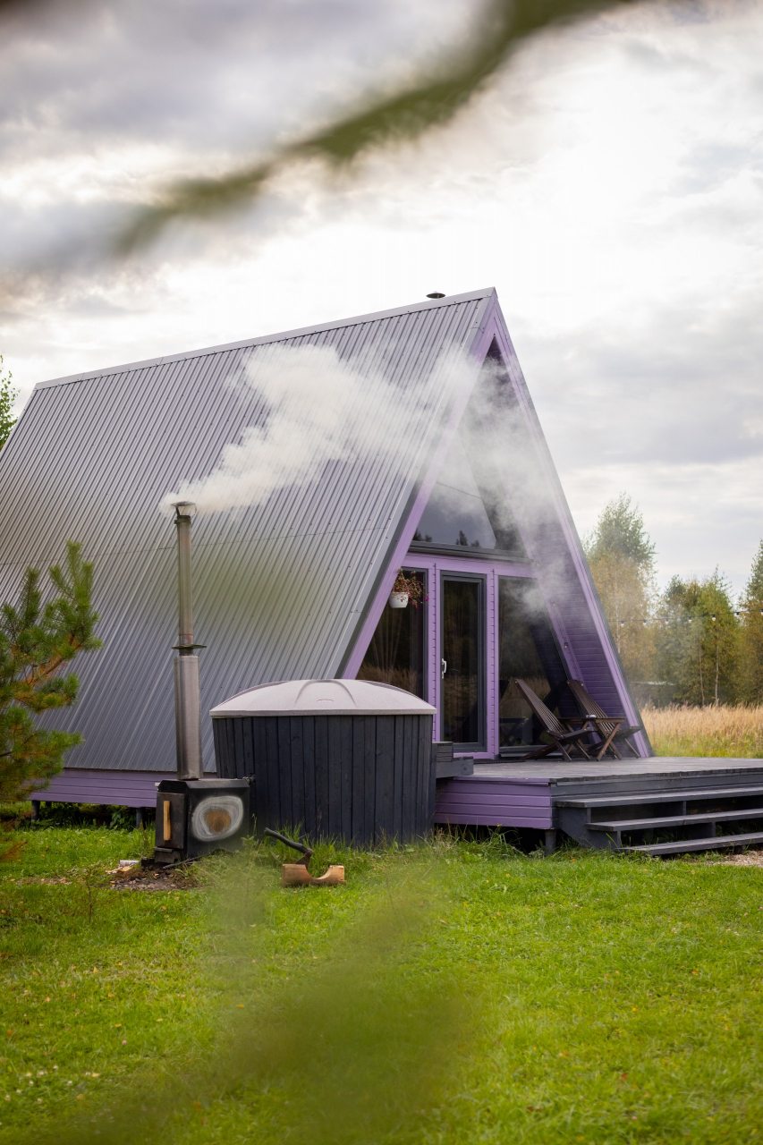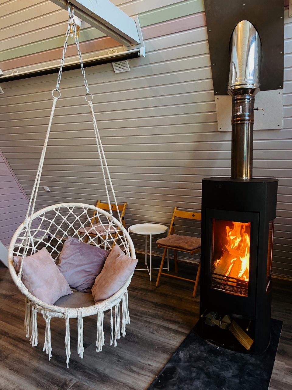 Гости могут расположиться в уютных а-фрейм домиках, в которых есть все современные удобства для лучшего отдыха: 2 спальных места на 4 гостей, ванная комната с гигиеническими средствами, телевизор, Wi-Fi, кондиционер, теплый пол и камин, кухонная зона. В каждом варианте размещения есть собственная терраса с уличной мебелью и банным чаном.