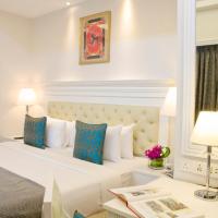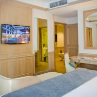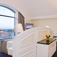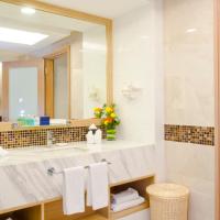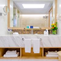 Offering city views, air-conditioned rooms are furnished with carpet flooring, a wardrobe, in-room safe, sofa and a flat-screen TV with cable/satellite channels.