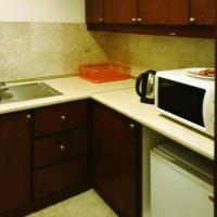Кухня оснащена микроволновой печью, холодильником и духовкой.