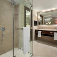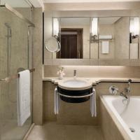 В стильных роскошных номерах отеля Shangri-La Kuala Lumpur есть просторная ванная комната с халатами и туалетно-косметическими принадлежностями.