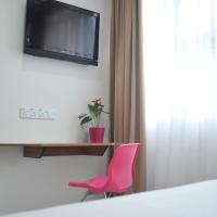 В номерах отеля V есть кондиционер, большие окна и белоснежные стены.