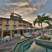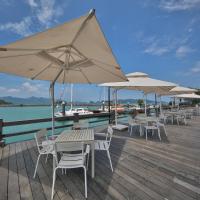 В ресторане Zest можно поужинать на дощатой террасе, любуясь видом на легендарный остров Беременной девы.