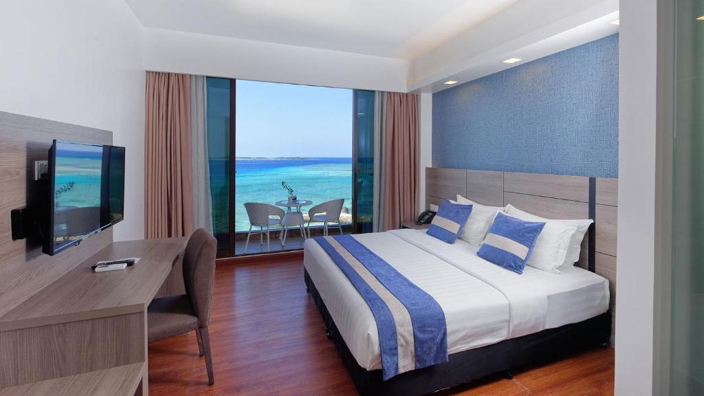 - Двухместный (Двухместный номер Делюкс с 1 кроватью и балконом, вид на море, предоставляются бесплатные шезлонги и снаряжение для сноркелинга)