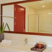 В номерах имеется кондиционер, письменный стол, чайник, холодильник, мини-бар, сейф, телевизор с плоским экраном, балкон и собственная ванная комната с душем.