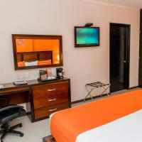 Светлые современные номера в отеле Cancún Aeropuerto оборудованы кондиционером и телевизором с плоским экраном и кабельными каналами.