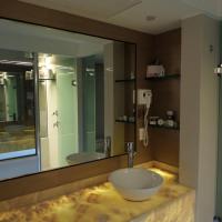 Просторная собственная ванная комната укомплектована феном и бесплатными туалетно-косметическими принадлежностями.