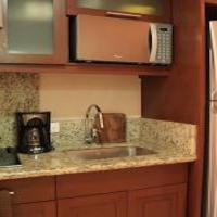 В апартаментах также есть современная мини-кухня с духовкой, плитой и микроволновой печью.