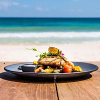 Желающие могут отведать вкусные напитки и блюда в ресторане Dune и пляжном клубе в тени пальм.