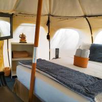 В числе удобств каждого шатра, оформленного в индивидуальном стиле, кровать размера «queen-size», постельное белье из хлопка и вентилятор.