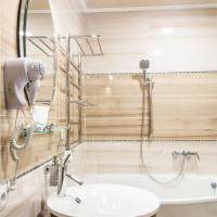 Стильные номера оснащены необходимой техникой, включая систему кондиционирования. Удобным являются персональные чайники, фены, гигиенические принадлежности. Каждая категория выполнена в светлой цветовой гамме.