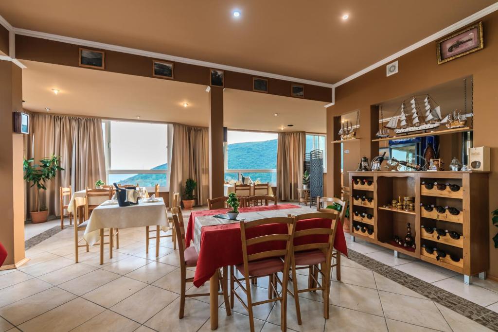 В ресторане с видом на Адриатическое море подаются блюда интернациональной кухни в виде «шведского стола» и по меню.