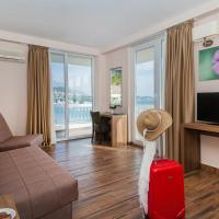Отель Sato с плавательным бассейном расположен в центре курортного города Сутоморе, всего в 30 метрах от собственного песчаного пляжа с шезлонгами.