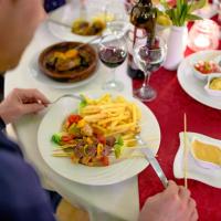 Гости могут пообедать во внутреннем дворе или в крытом зале.