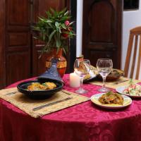 This Riad serves traditional Moroccan cuisine featuring local products from the market that guests can enjoy in the dining room or on the terrace with views Koutoubia Mosque and the Atlas Mountains.