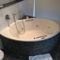 В люксе установлена собственная гидромассажная ванна и обустроена гостиная зона.