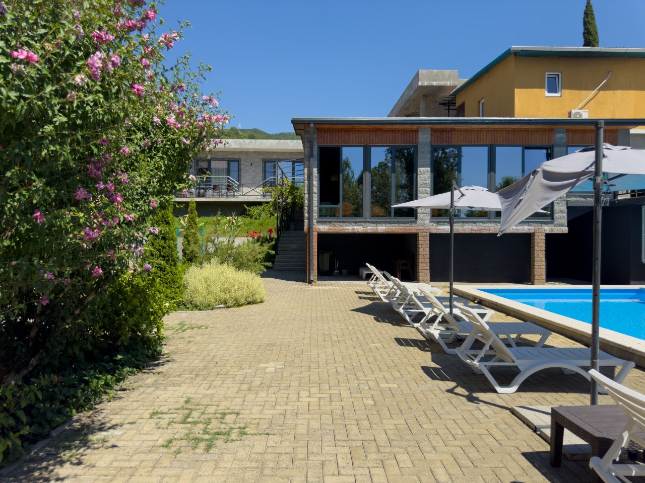 В номере очень уютно и комфортно, он оснащен всем самым необходимым. Чистый санузел, видно, что ремонт в нем делался совсем недавно. Территория двора ухоженная, есть место для уединенного отдыха. Рядом есть магазины и кафешки.
