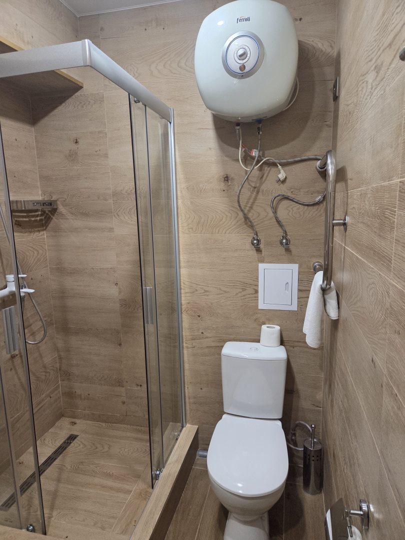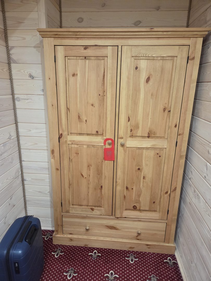 Из недостатков: сильный запах дерева, тумбочки без ящичков и дверок. Дверь осталась старая.