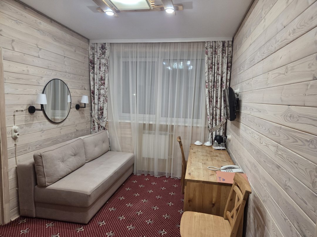 Замечательный чистый двухкомнатный номер. Дышащее дерево стен и мебели - просто выше всяких похвал. Чистое белоснежное хлопковое белье, каждый день замена использованных полотенец.