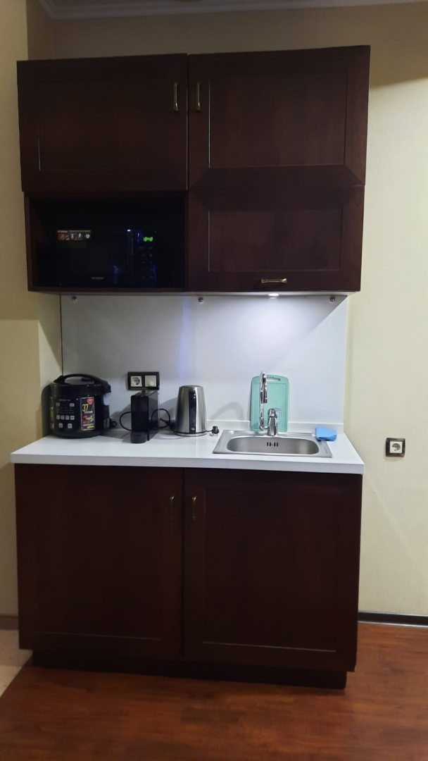 Сантехника в норме, кухонное оборудование работает, с освещением проблем нет. В номере чисто. Всё ОК!