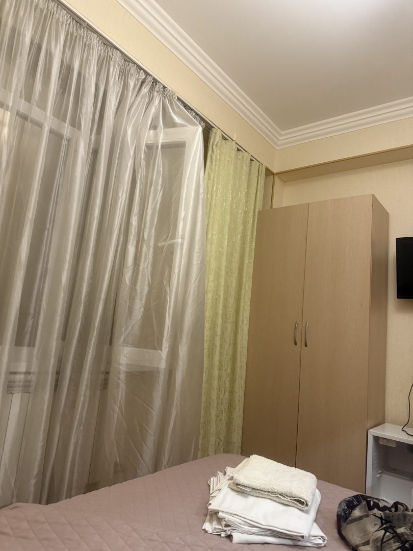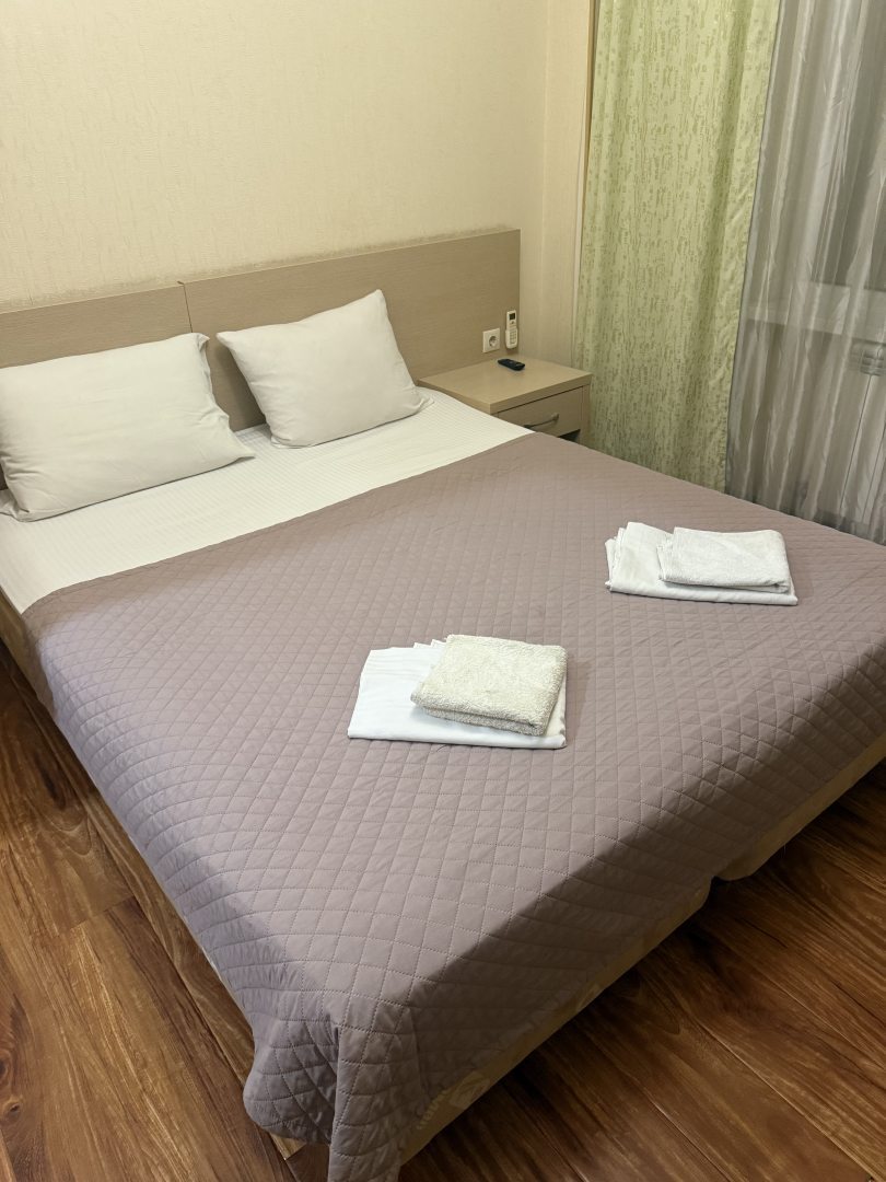 Хорошее место расположение, рядом море, кафешки, магазин Магнит и остановка общественного транспорта и станция жд. В номере небольшое окно, выходило на соседнее здание. Полотенца выдали. Удобная кровать, спалось хорошо.