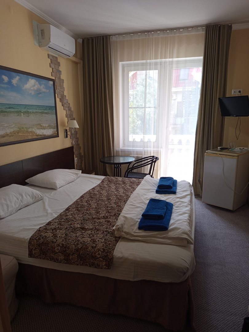 Выгодное преимущество данного гостевого дома - это расположение. Внутри номера качественная мебель установлена. Постельное белье, подушки, матрасы - все в отличном состоянии. Здесь есть хороший бассейн, а если идти к пляжу, то это всего несколько минут. До гостевого дома можно пешком дойти и с ЖД вокзала. Мы отдыхали с ребенком, детская площадка во дворе нас очень порадовала.