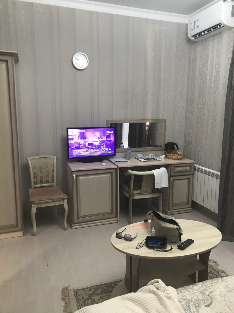 Уютный отель на первой линии. Рядом столовая Патиссон, где можно не дорого и вкусно поесть с утра и до вечера. Номер в отеле чистый, хорошая постель, wi-fi шустрый, халаты, полотенца, шампунь, гель, фен -всё есть. Очень понравился кофе автомат на 2 этаже. Недорогой и хороший кофе. На этаже есть микроволновка. На ужин брала в Патиссоне на вынос, в микроволновке разогревала. В номере есть холодильник, чайник, вилки, ложки, пара тарелок небольших. До моря, до остановки, до фонтанов очень близко. Для отдыха то, что надо.