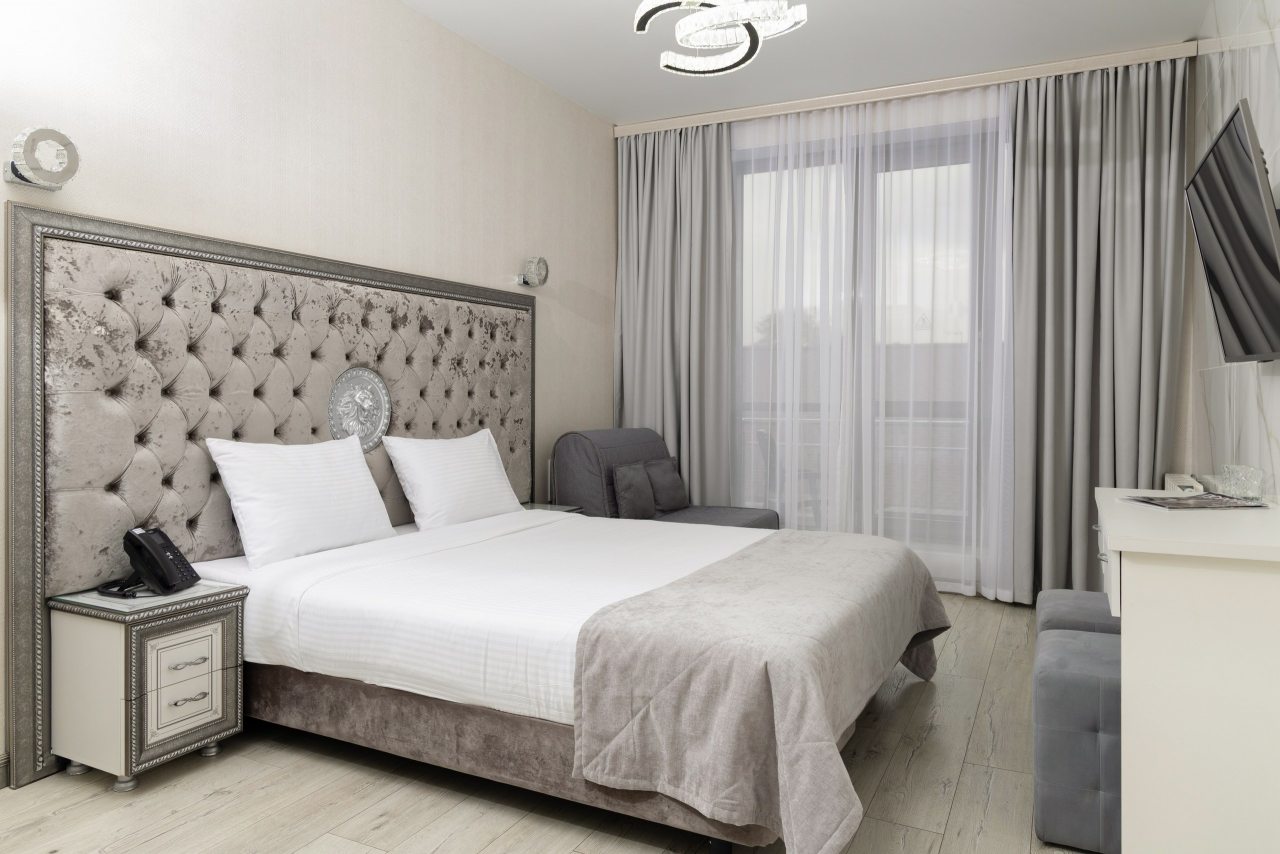Очень красивый отель и номера! Все соответствует фотографиям. Лучшее соотношение цена-качество. Понравилось все: чистота, большой телевизор, удобная и мягкая кровать, добрый персонал, БЕСПЛАТНАЯ экскурсия от отеля на красную поляну, бассейн (чистый и теплый), сауна и еще много много всего, хоть были и одни сутки только, но впчатления остались только самые положительные. Теперь, когда будем а Адлере - только сюда. Находится отель в отличном месте, все необходимое рядом.